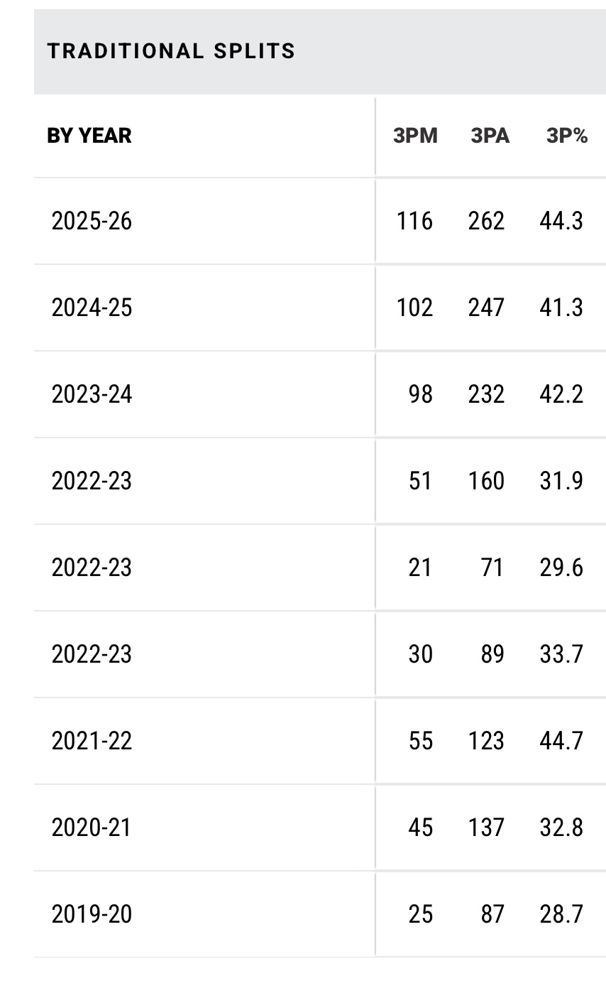 稳!八村塁本赛季三分命中率44.3%,高居联盟第五;连续三个赛季三分40%以上。