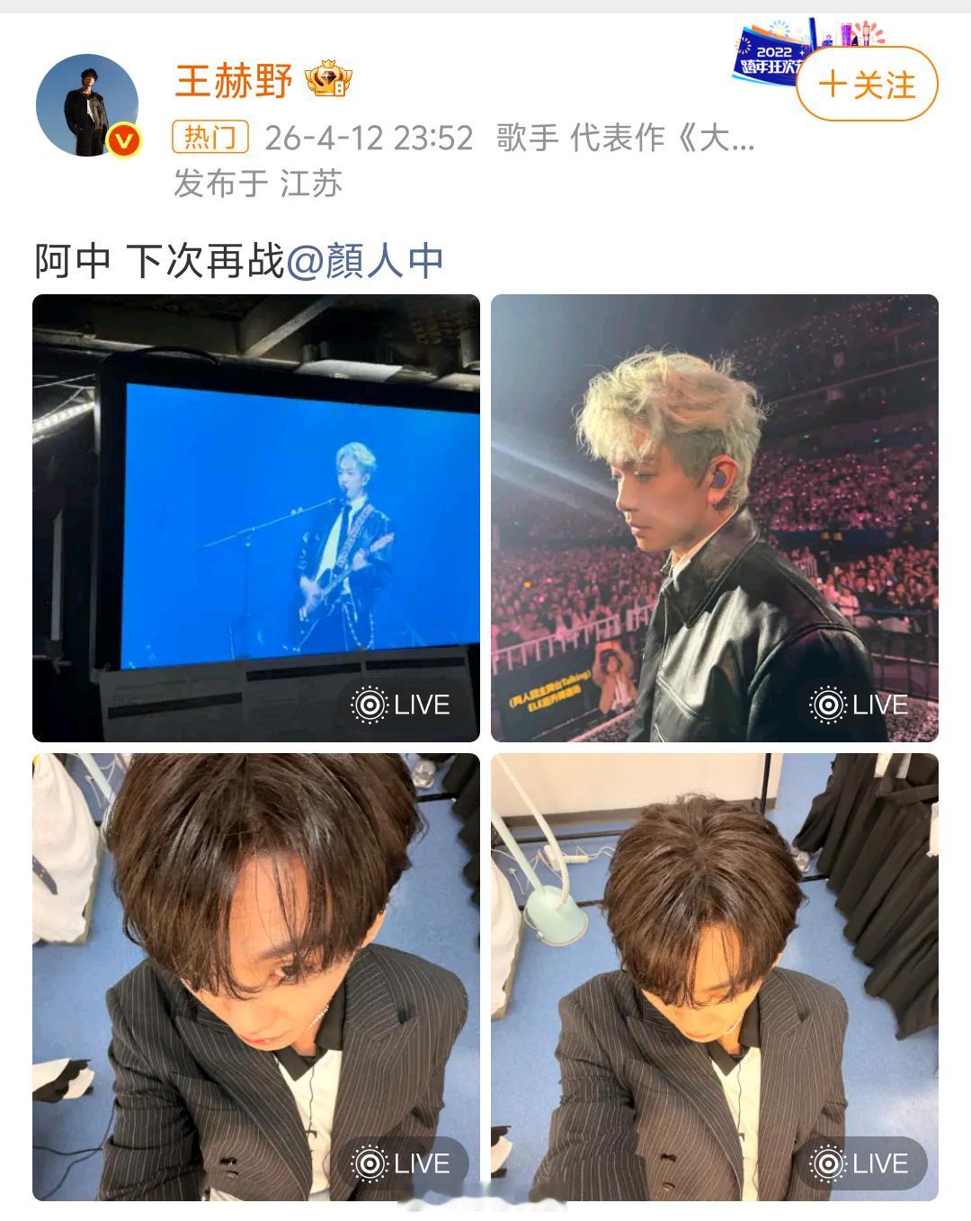 王赫野颜人中下次再战昨晚的舞台只是序章,期待下一场“赫”“颜”之战!