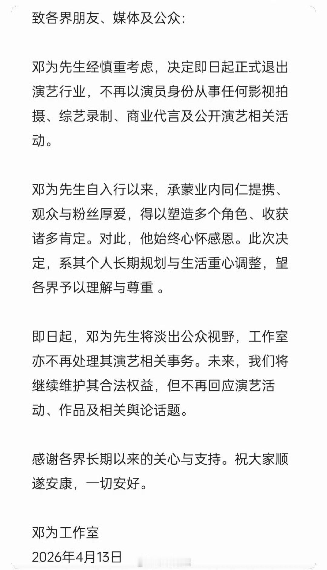 邓为粉丝脱粉小作文,长期不进组不营业,确实折磨粉丝。