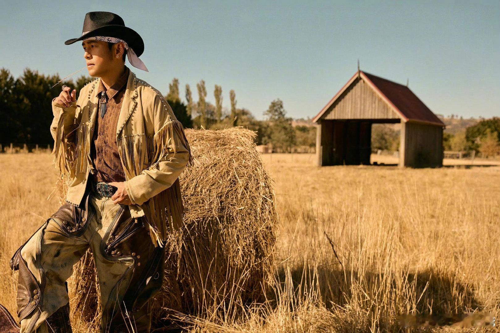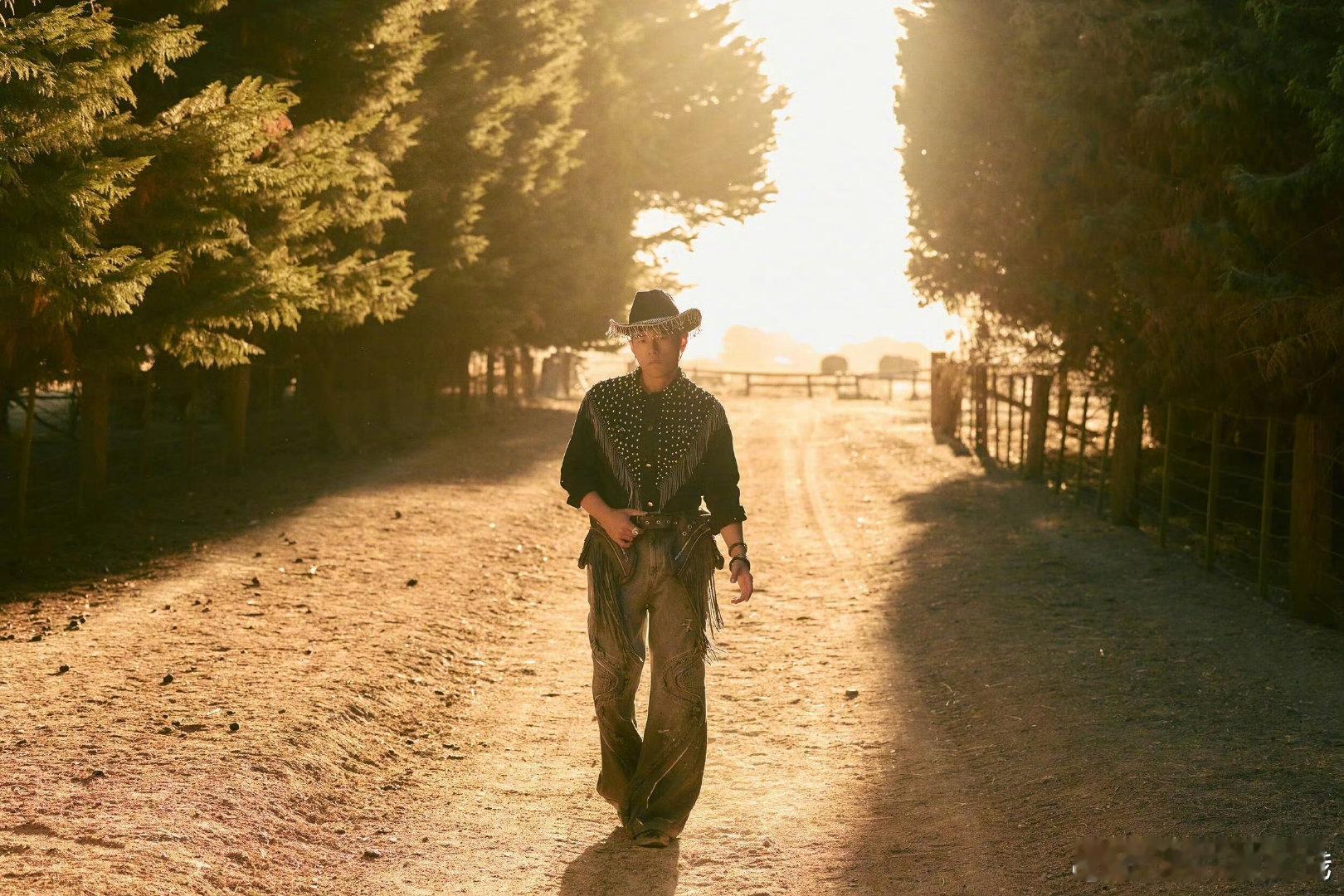 周杰伦乡间的路MV剧照 夕阳把墨尔本郊外的旷野染成琥珀色,周杰伦走在无边田野的小