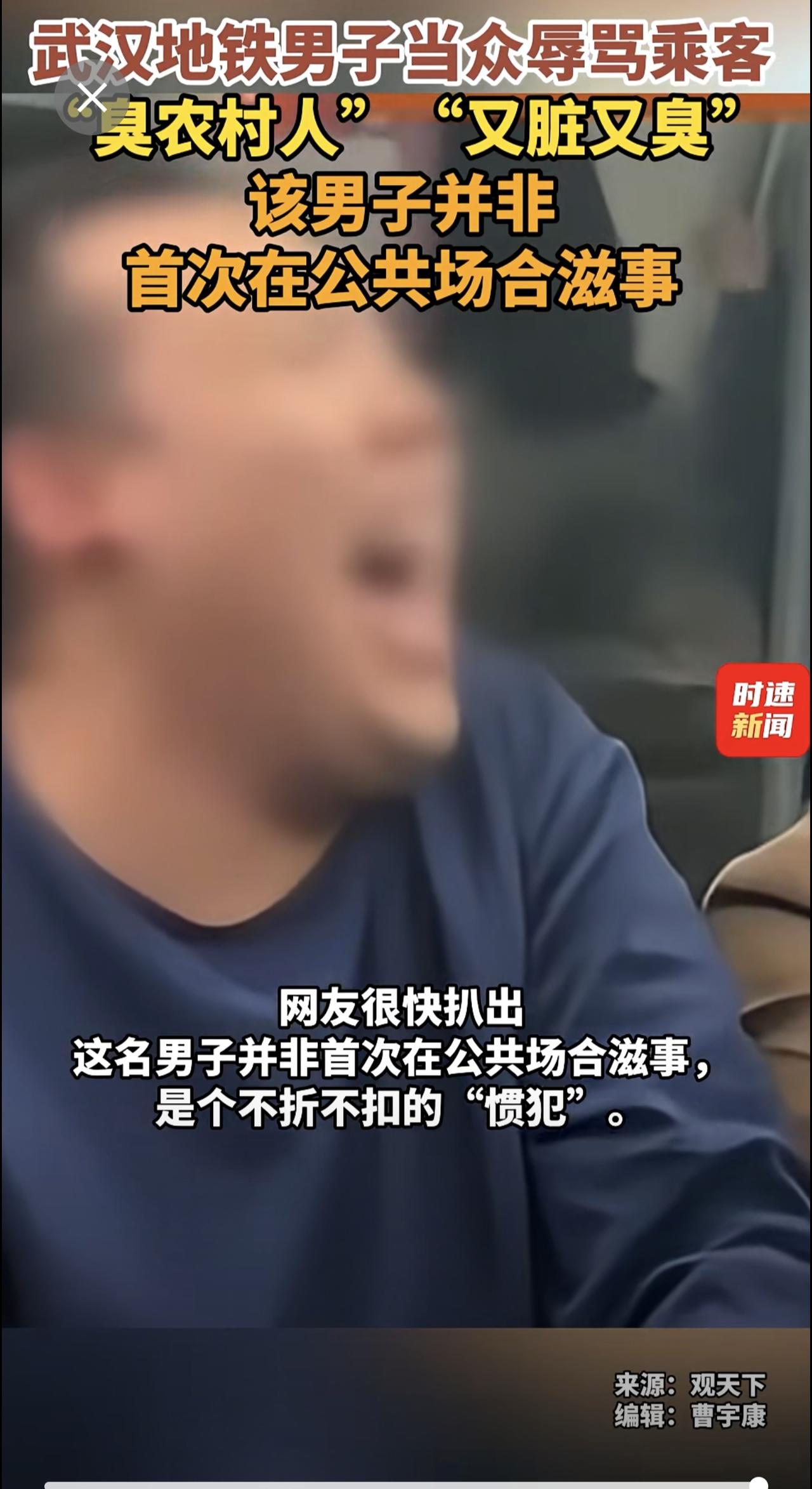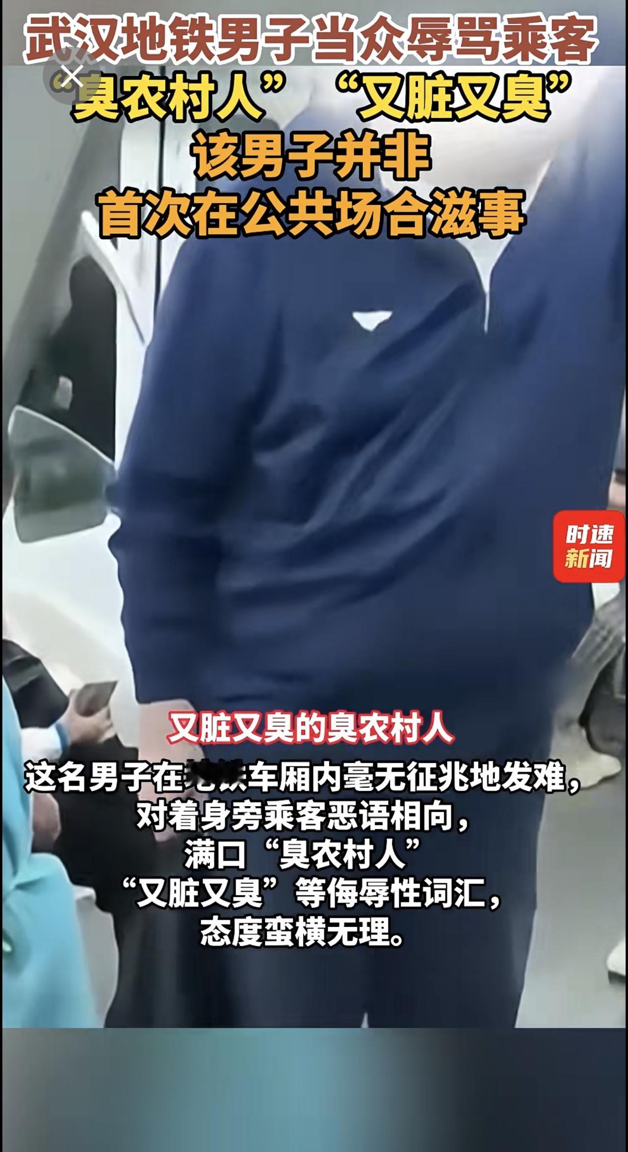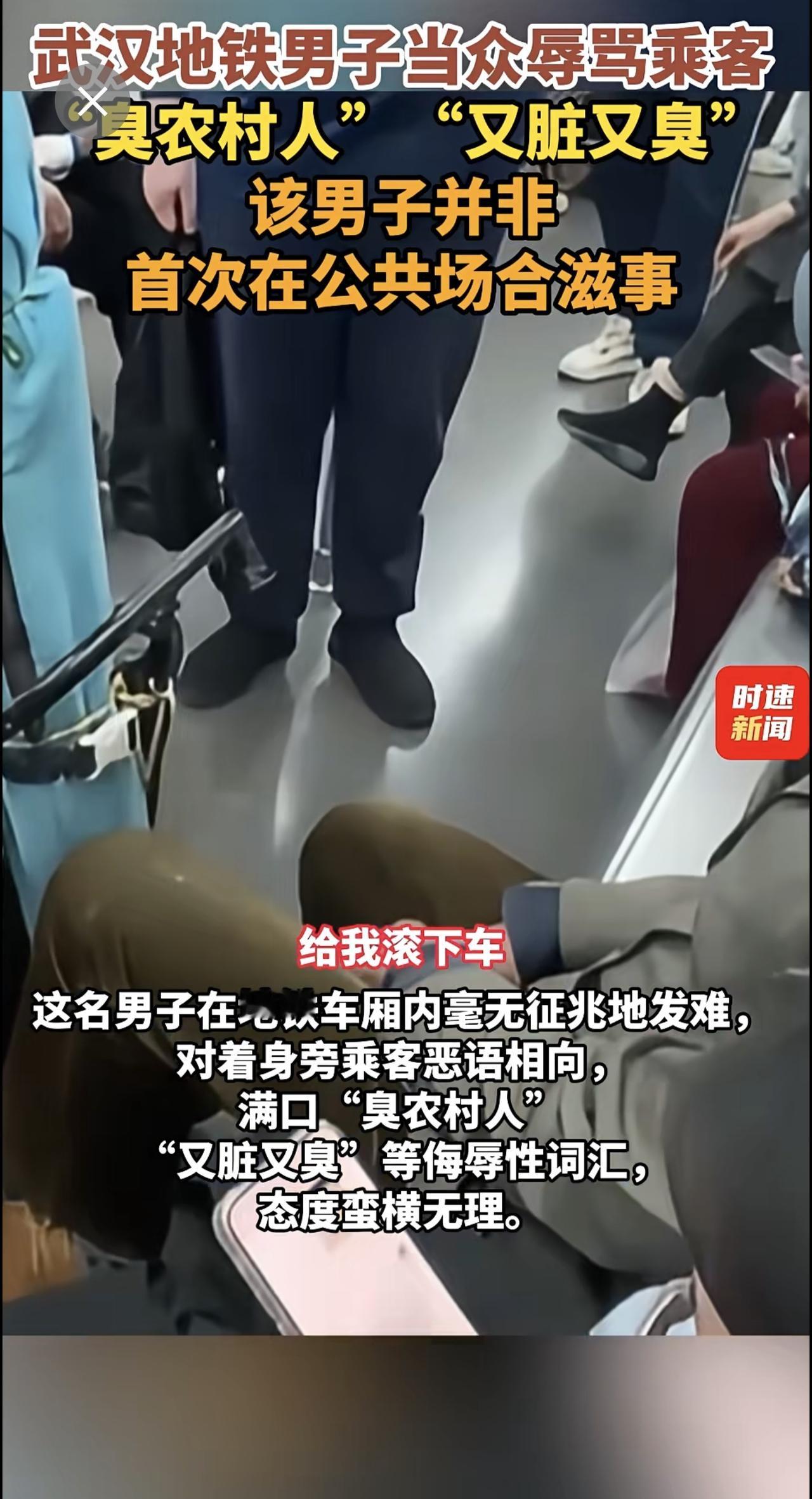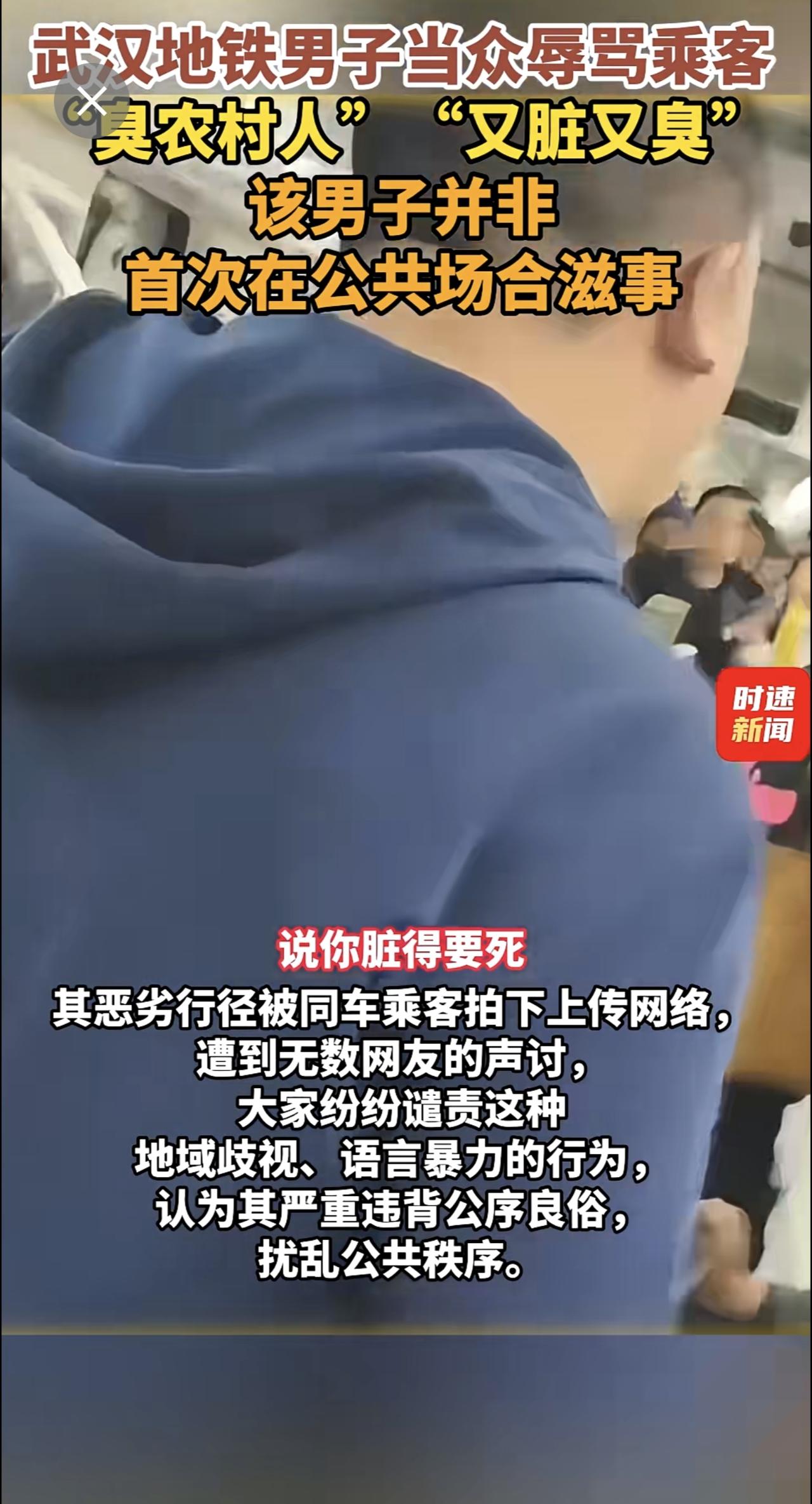 武汉地铁男子当众辱骂乘客,“臭农村人”“又脏又臭”,该男子并非首次在公共场合滋事