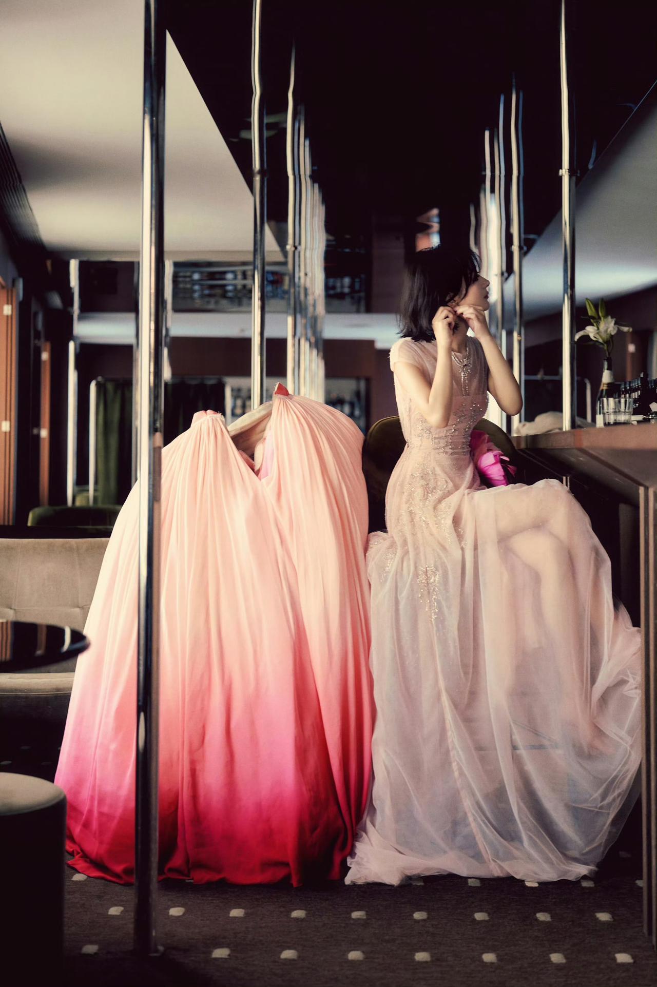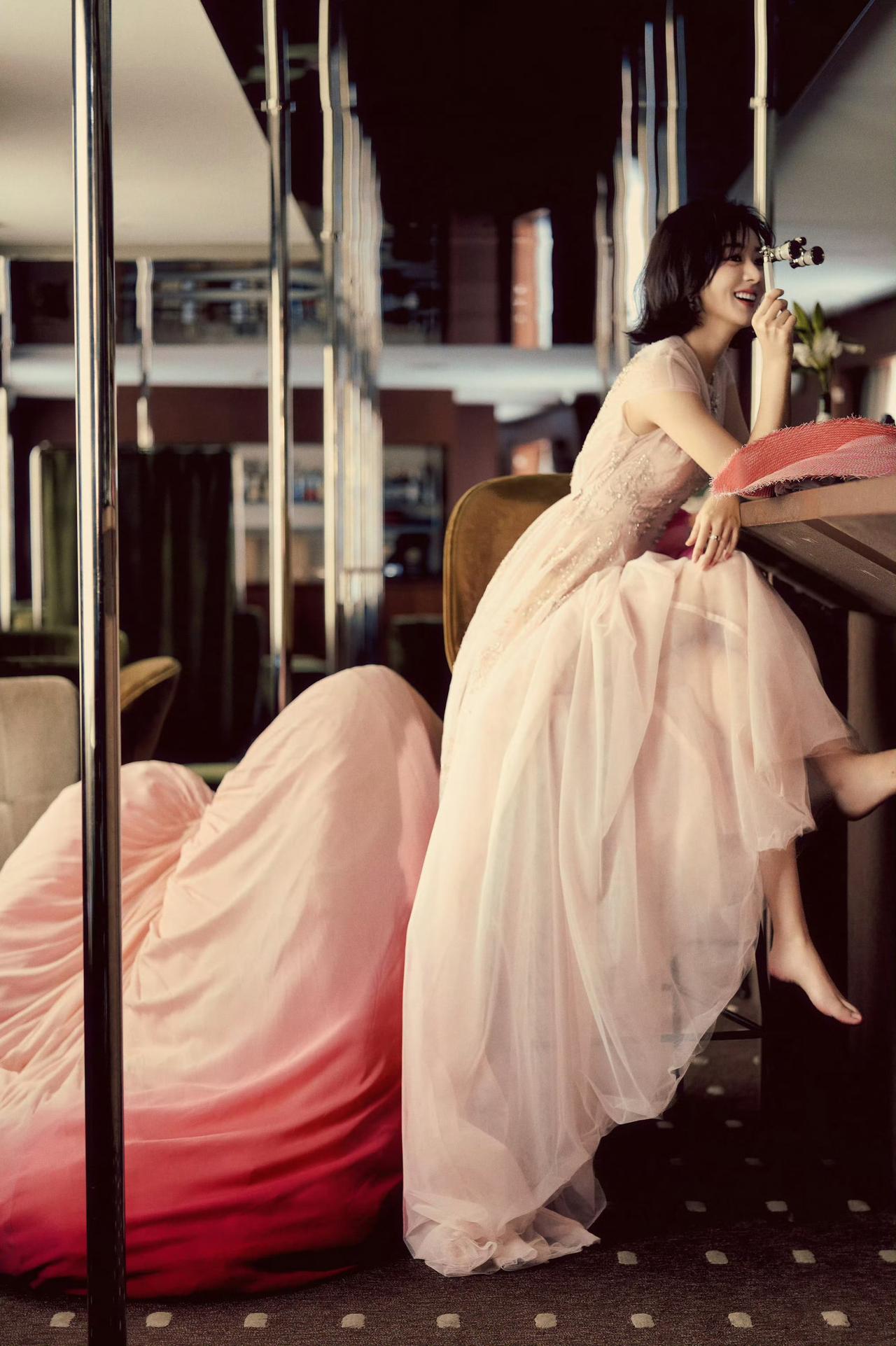 转身换上粉白渐变纱裙,腰侧大朵粉花点缀,层叠裙摆像云朵般浪漫。短发配纱裙,甜而不腻,灵动又温柔。咖啡馆里托腮看书、赤脚笑闹的样子,是从童话里走出来的公主本人,甜度超标!