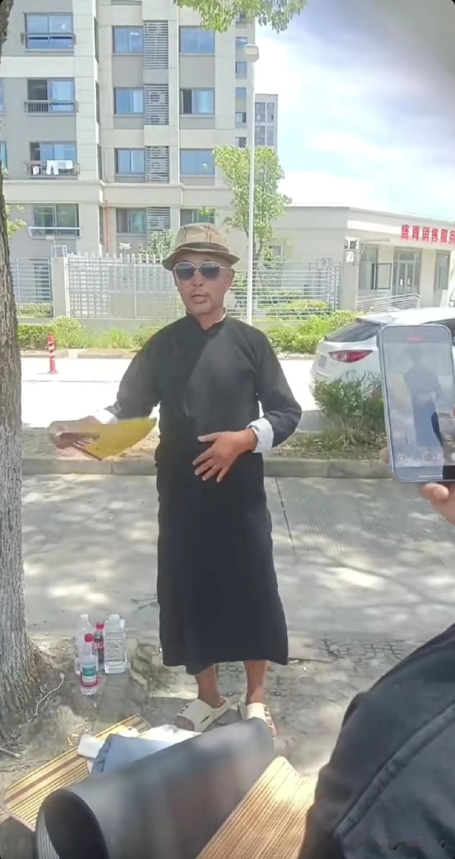 不过说实话,这身打扮还挺有味道,比公园里那些穿唐装打太极的老大爷有范儿多了。只是不知道他收废品时也这副打扮不?那画面太美不敢想啊!