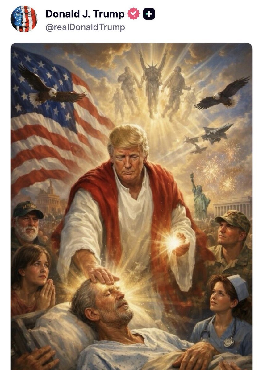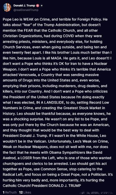 现任教皇谴责特朗普发动战争,于是特朗普狂骂教皇,甚至将自己描绘成上帝之子、人类的救世主,耶稣基督…