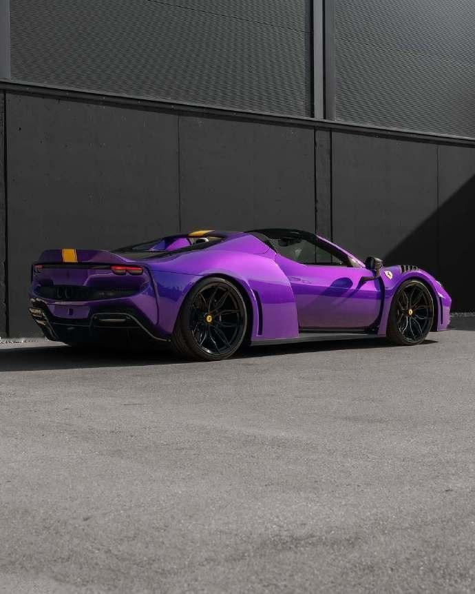 Novitec 不愧是让法拉利变酷的高手!2025 年推出的紫金配色 296 GTS N-Largo(“小丑” 款)颜色绝美,像湖人队球星的座驾。它采用全碳纤维宽体改装,宽度增加约 119 毫米,选装鸭尾式扰流板,配 21/22 英寸黑色 Vossen 轮毂。内饰有黄色缝线白色绗缝座椅。空气动力学套件超厉害,250km/h 时速下能提升 27% 的下压力。靠发动机处的动力系统升级,让它输出 856 马力,比原厂多 37 马力。全球限量 15 套,且全车减重,刹车也优化,价格虽贵但绝对吸睛,赛道表现更出色!汽车资讯