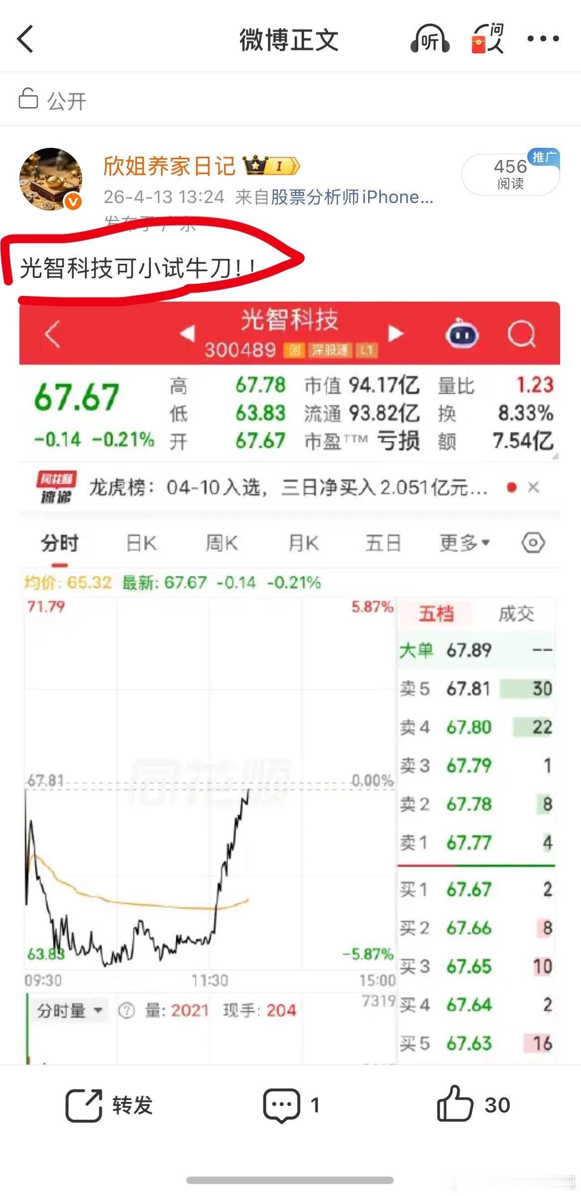光智科技继续强势拉升中,欣姐的实力有目共睹!点赞168!一起发!