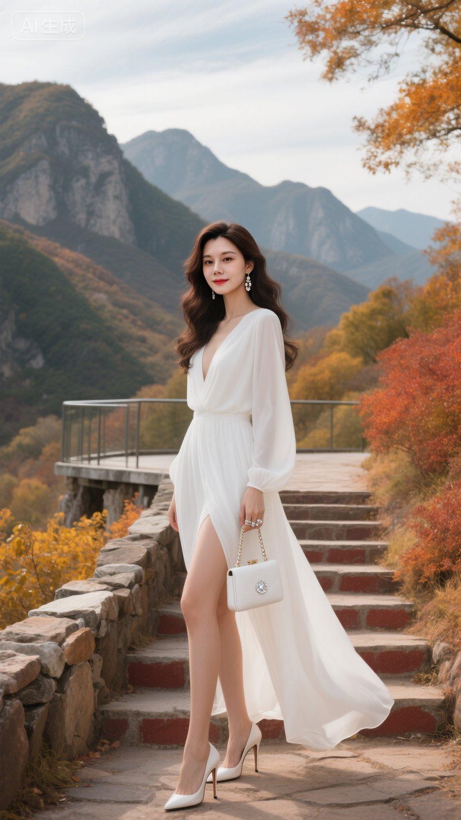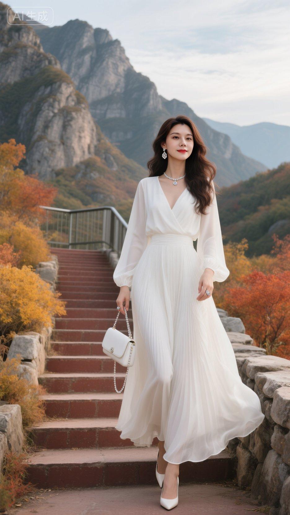 气质收腰白色显瘦长裙