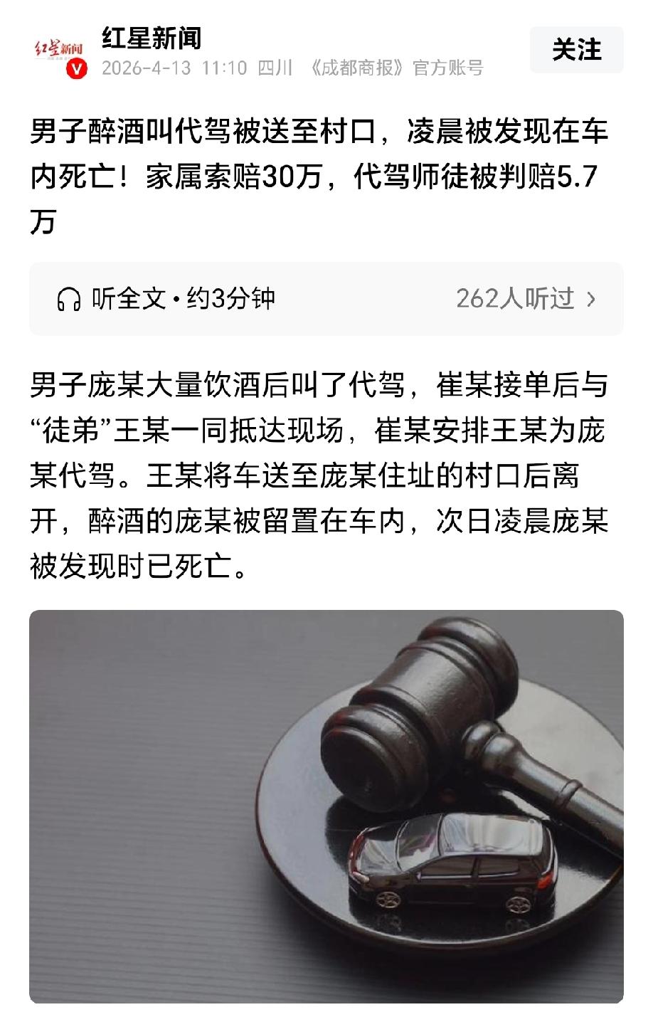 河南南阳,男子醉酒后,叫了代驾将其送回,没想到,代驾小伙将车送到村口就离开,对醉酒在车内的男子不管不顾。次日凌晨,男子被人发现时,早已身亡在车内。男子家属不服气,把代驾小伙告上法庭,索赔30万元赔偿。代驾小伙不服:我把人安全送达目的地,完成了订单,和我们有什么关系?结果,法院的判决还是让代驾小伙出乎意料。