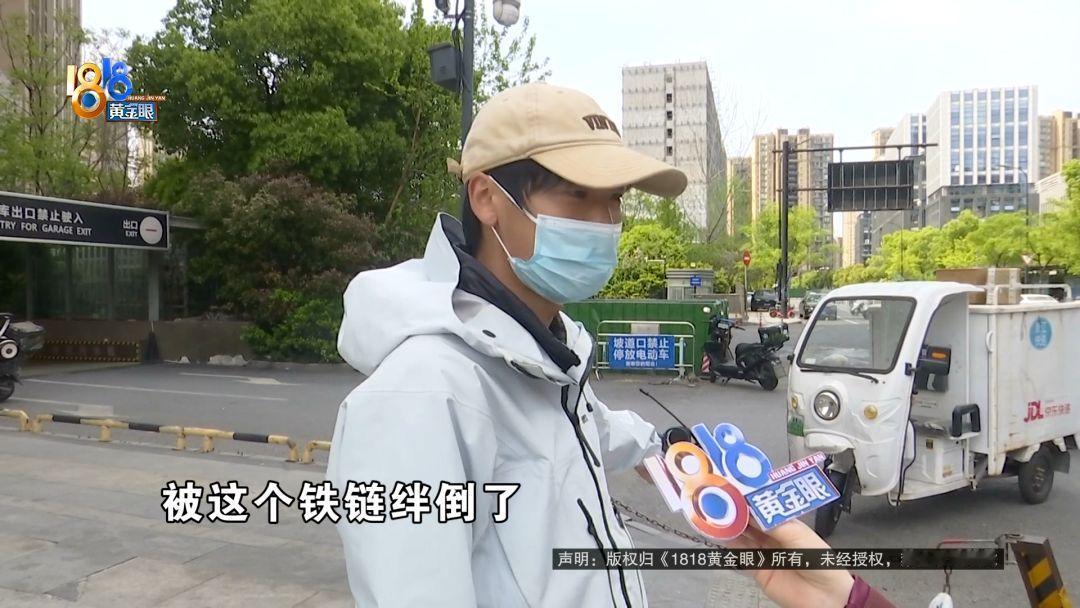 主管表示这条铁链是为了防止外卖车辆乱停乱放堵塞消防通道才设立的,而且两边的立柱上都贴了反光膜。