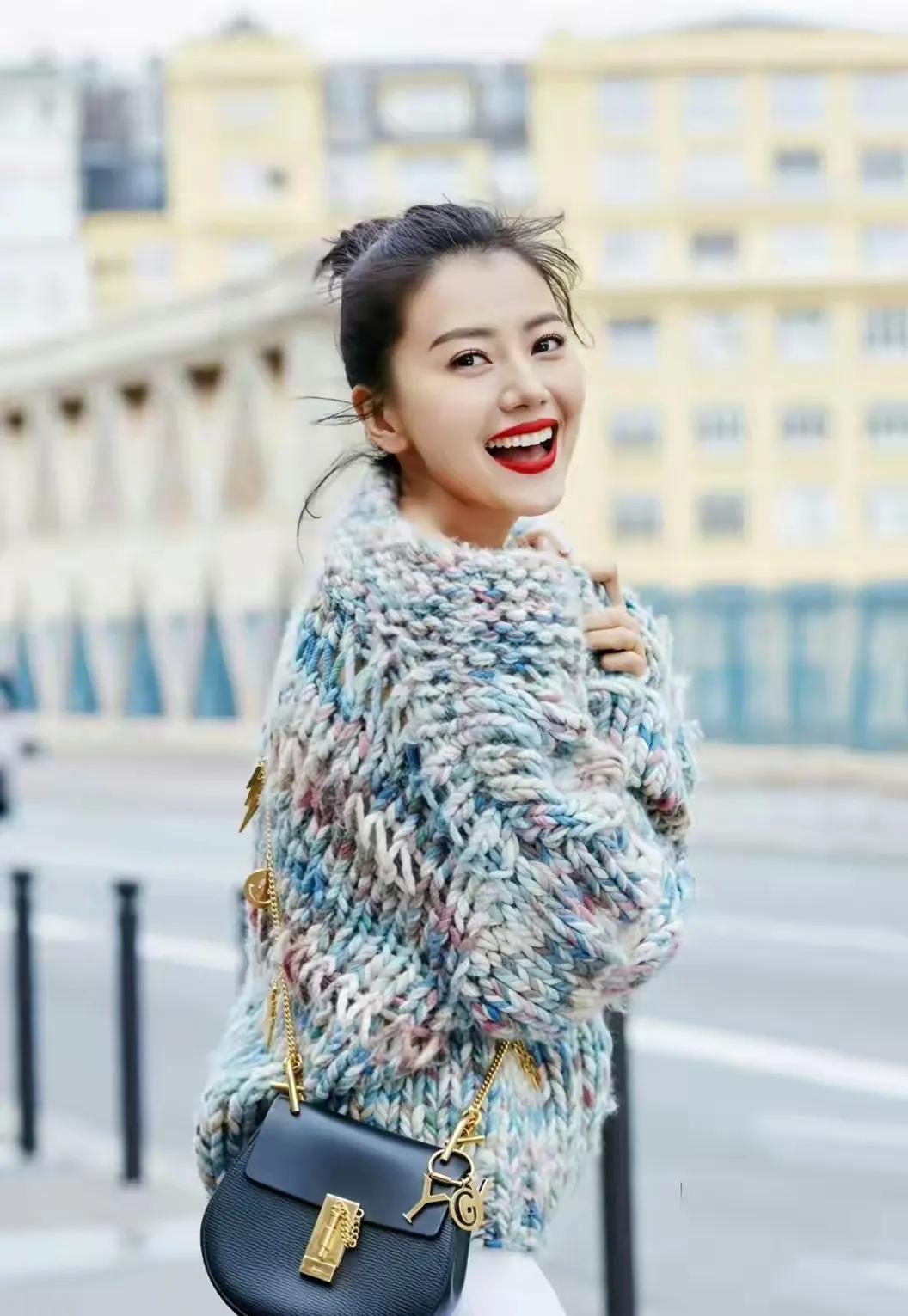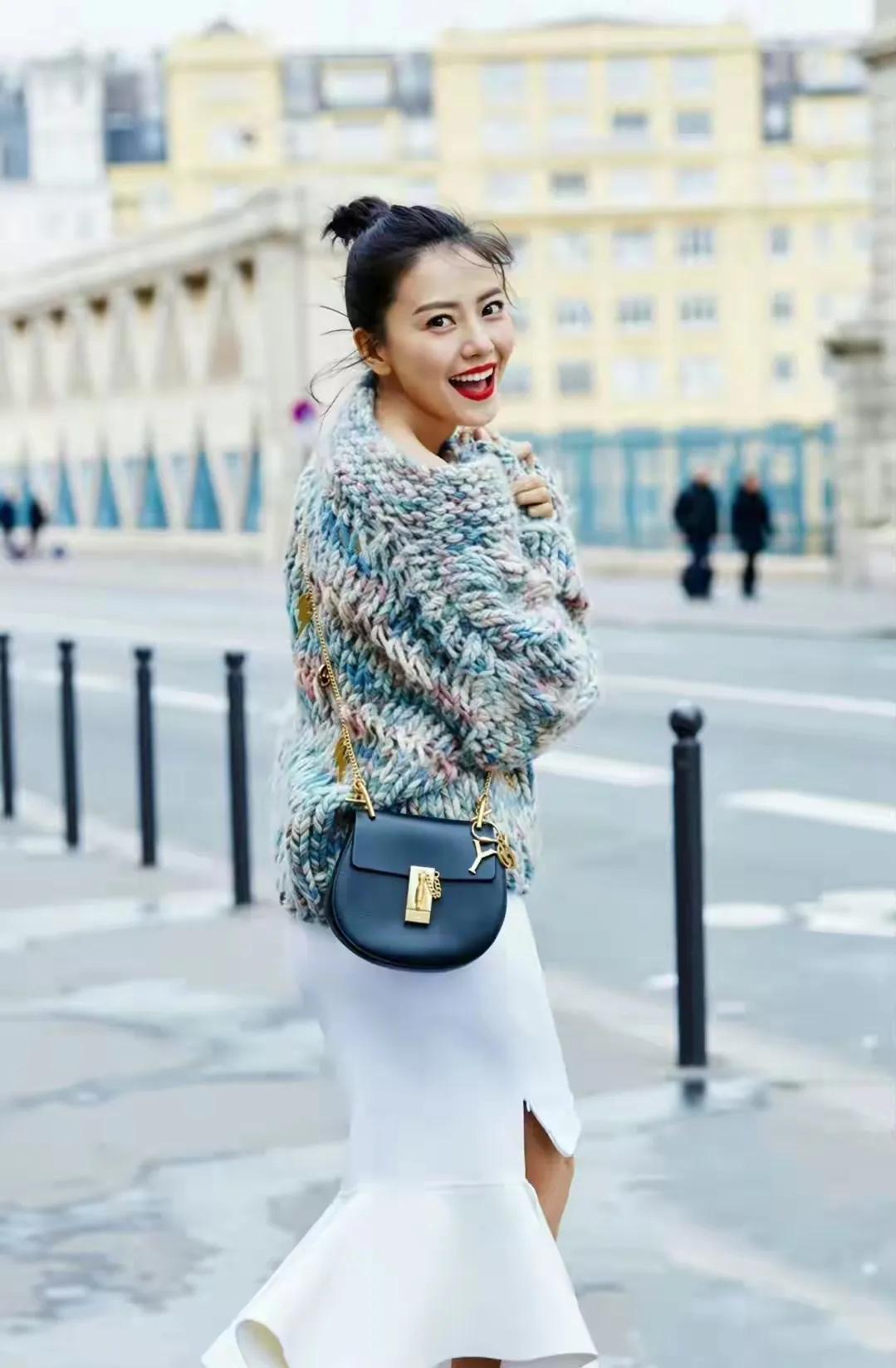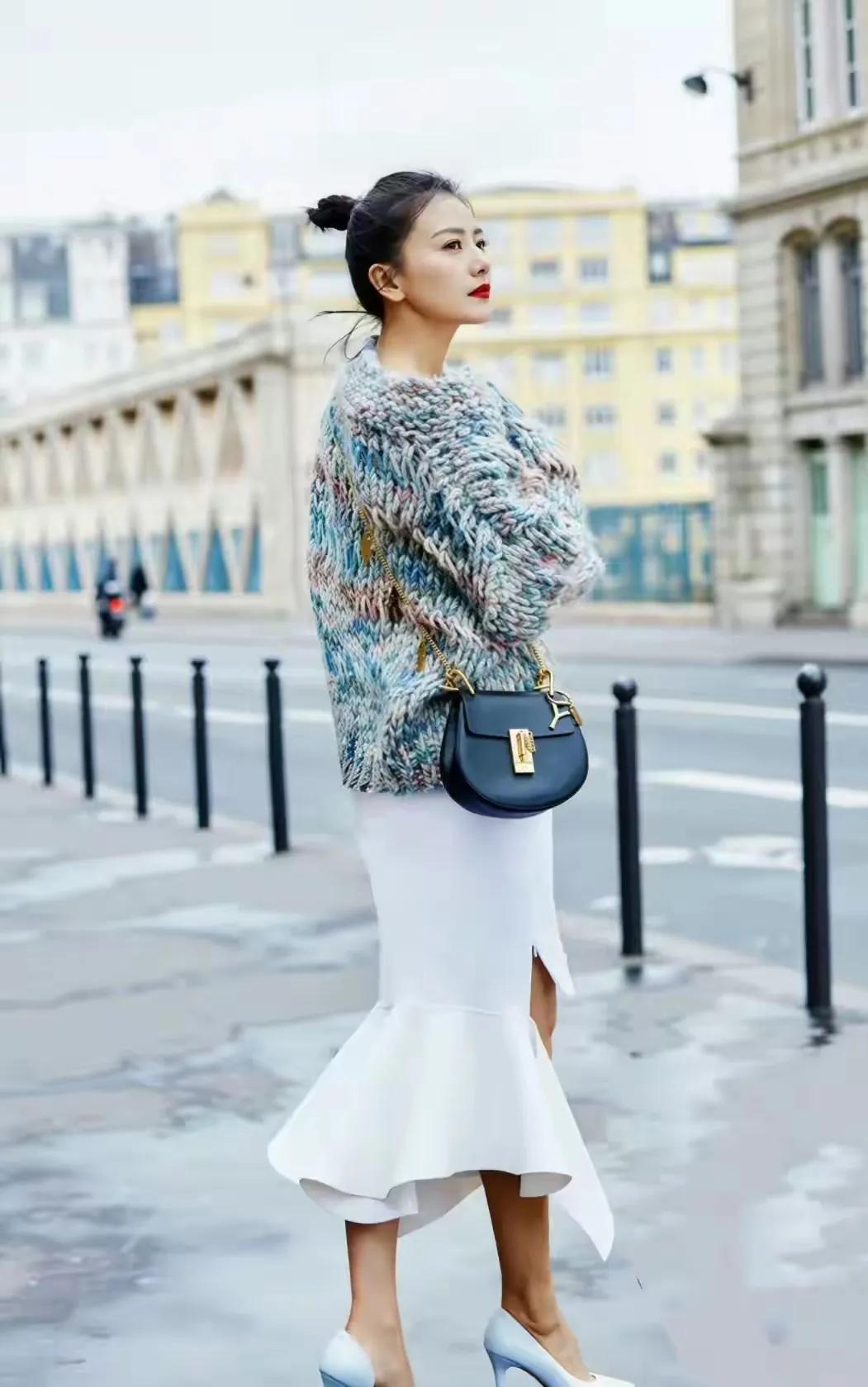 高圆圆把岁月静好穿在身上✨ 巴黎街头的高圆圆太绝了!彩线毛衣配鱼尾裙,温柔又