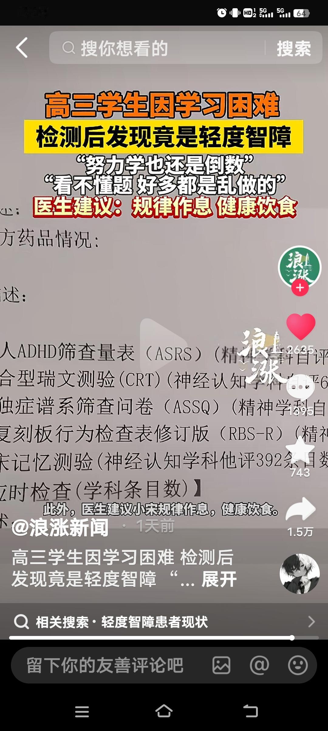 最近,高三学生小宋的事儿着实感觉有点好笑。小宋学习吃力,压力巨大,焦虑到不想学习,便去医院检查,结果查出轻度智障,还确诊了多动症。