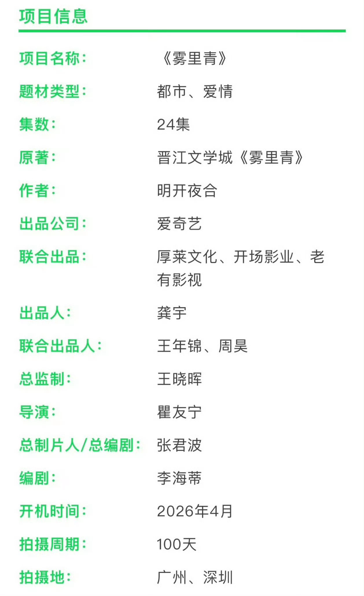 雾里青角色招募中李现张婧仪雾里青角色招募中李现张婧仪强强联手,《雾里青》直接把期待值拉满,坐等开机!