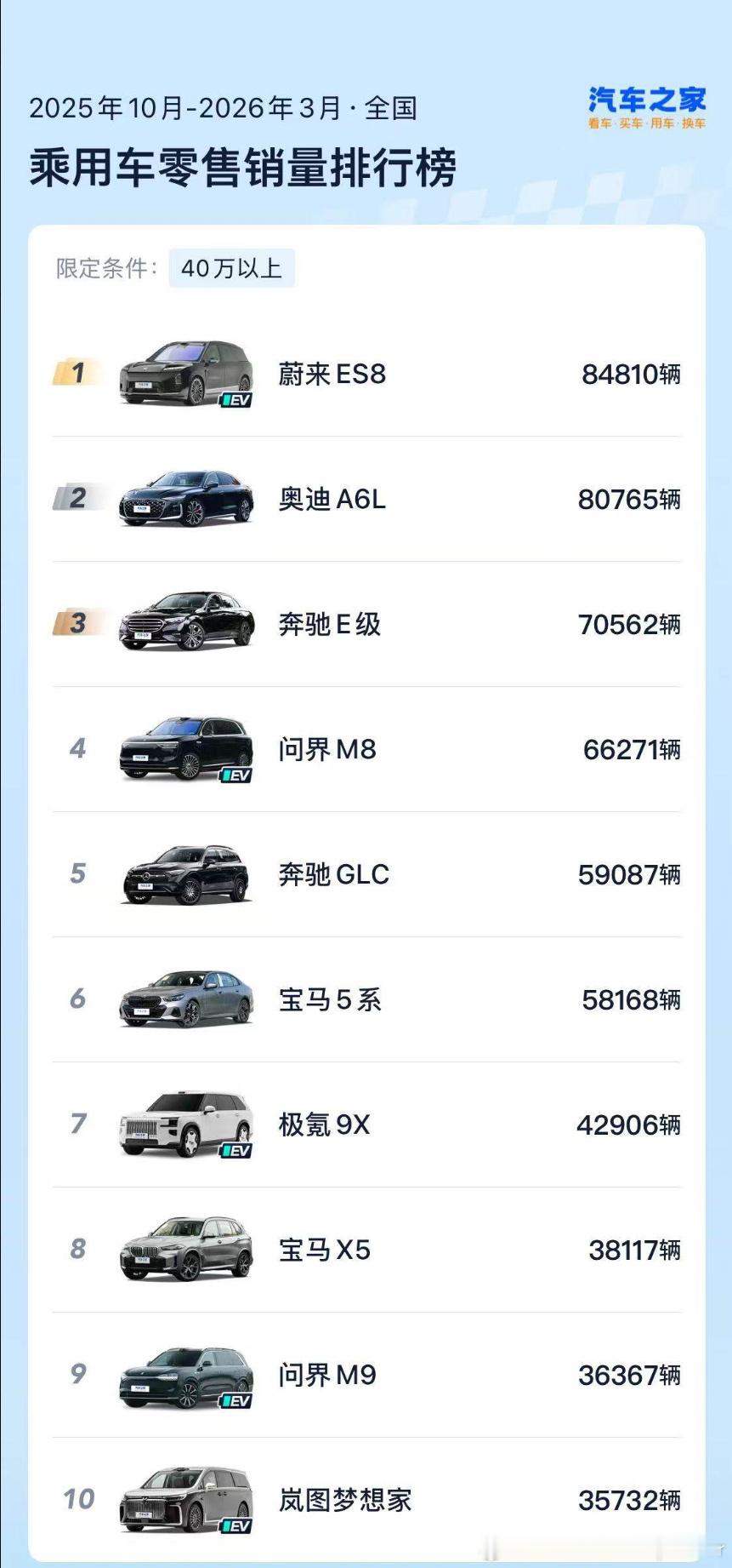 再给大家通报一下好消息,蔚来ES8在过去半年时间里,无论是大型SUV销量榜单,亦或是40万以上豪华车车榜单,都是冠军,这份成绩单相当可怕蔚来