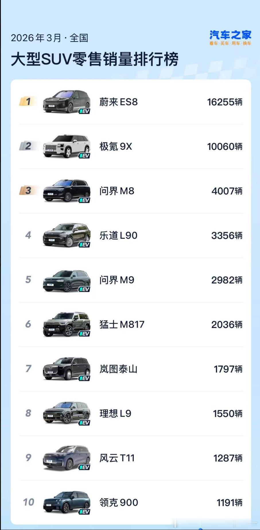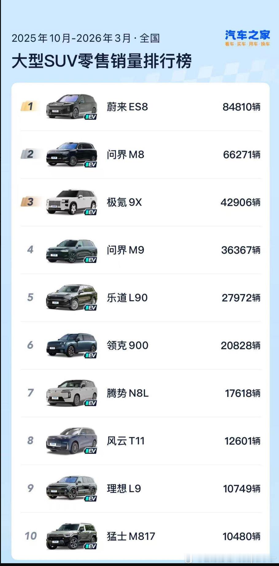 再给大家通报一下好消息,蔚来ES8在过去半年时间里,无论是大型SUV销量榜单,亦