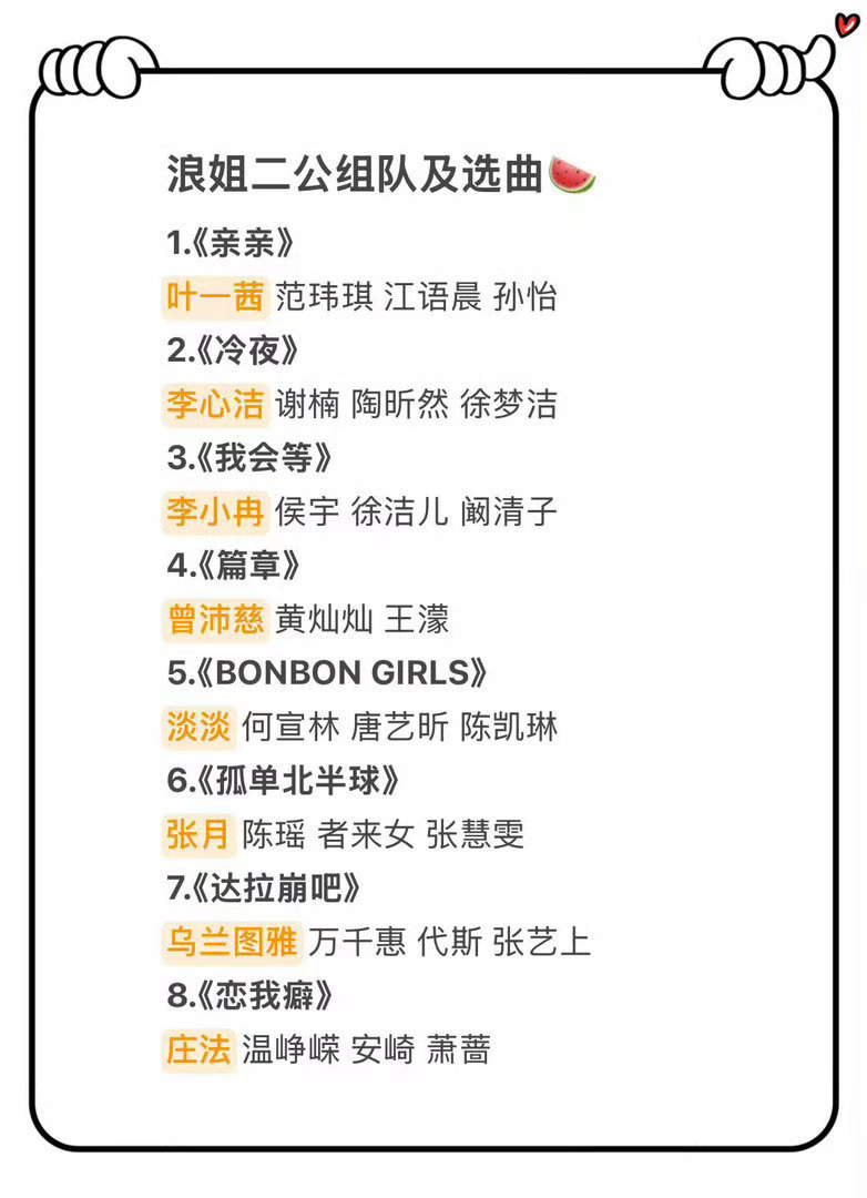 看浪姐二公的选曲和赛制,队长压力好大,而且温峥嵘唱《恋我癖》?范范要唱鱼姐的歌耶,好期待。曝浪姐二公赛制 乘风2026