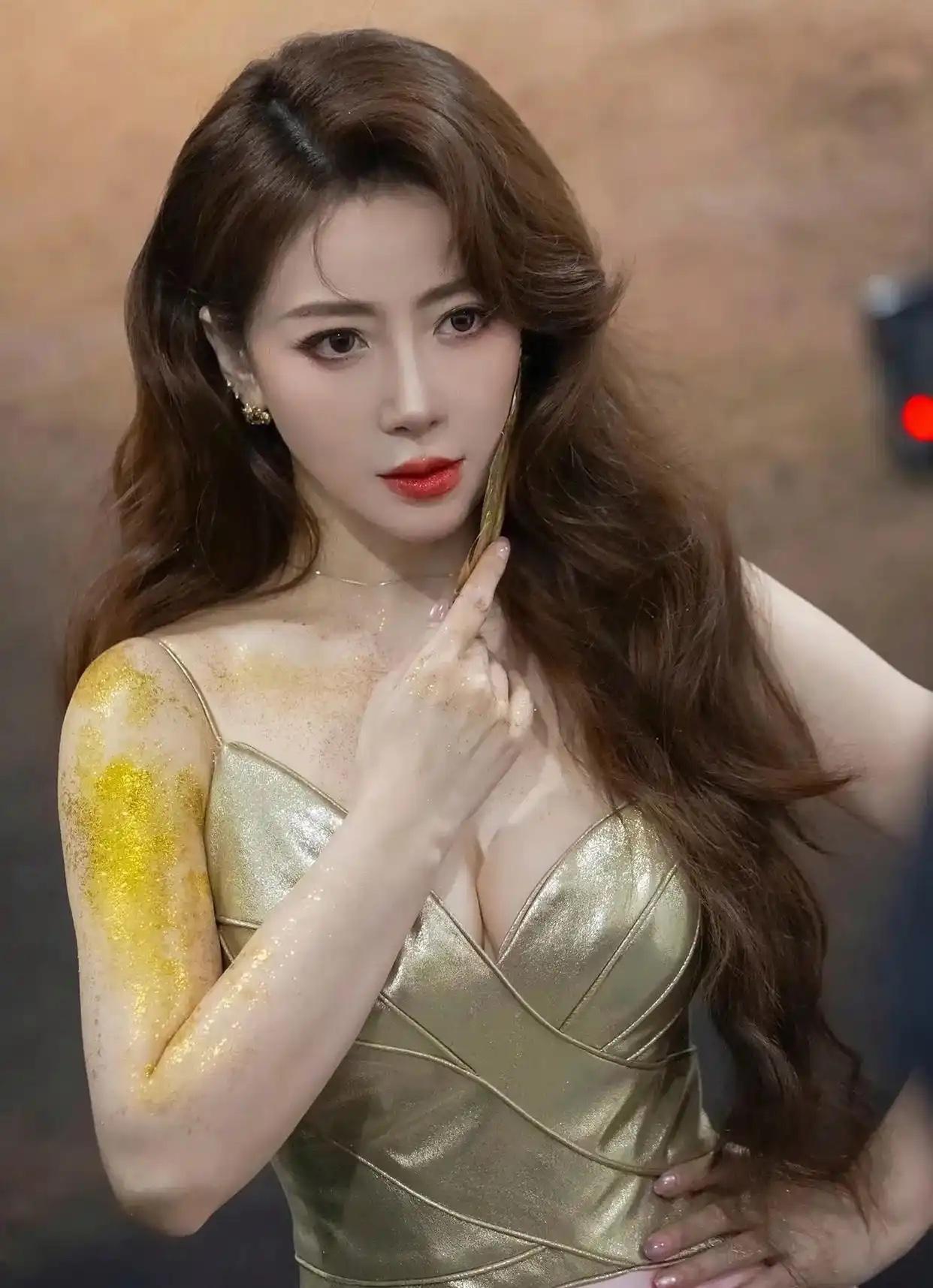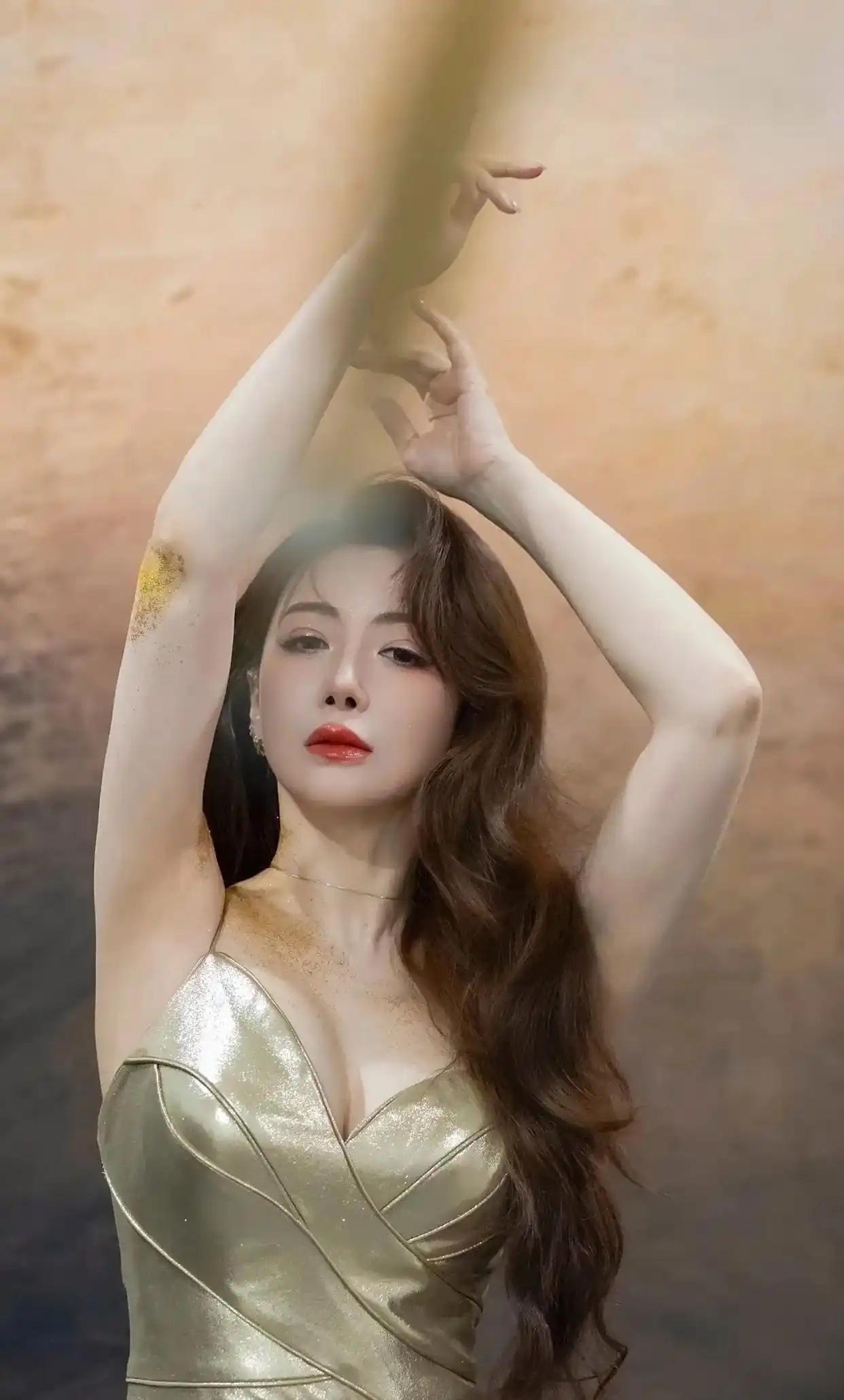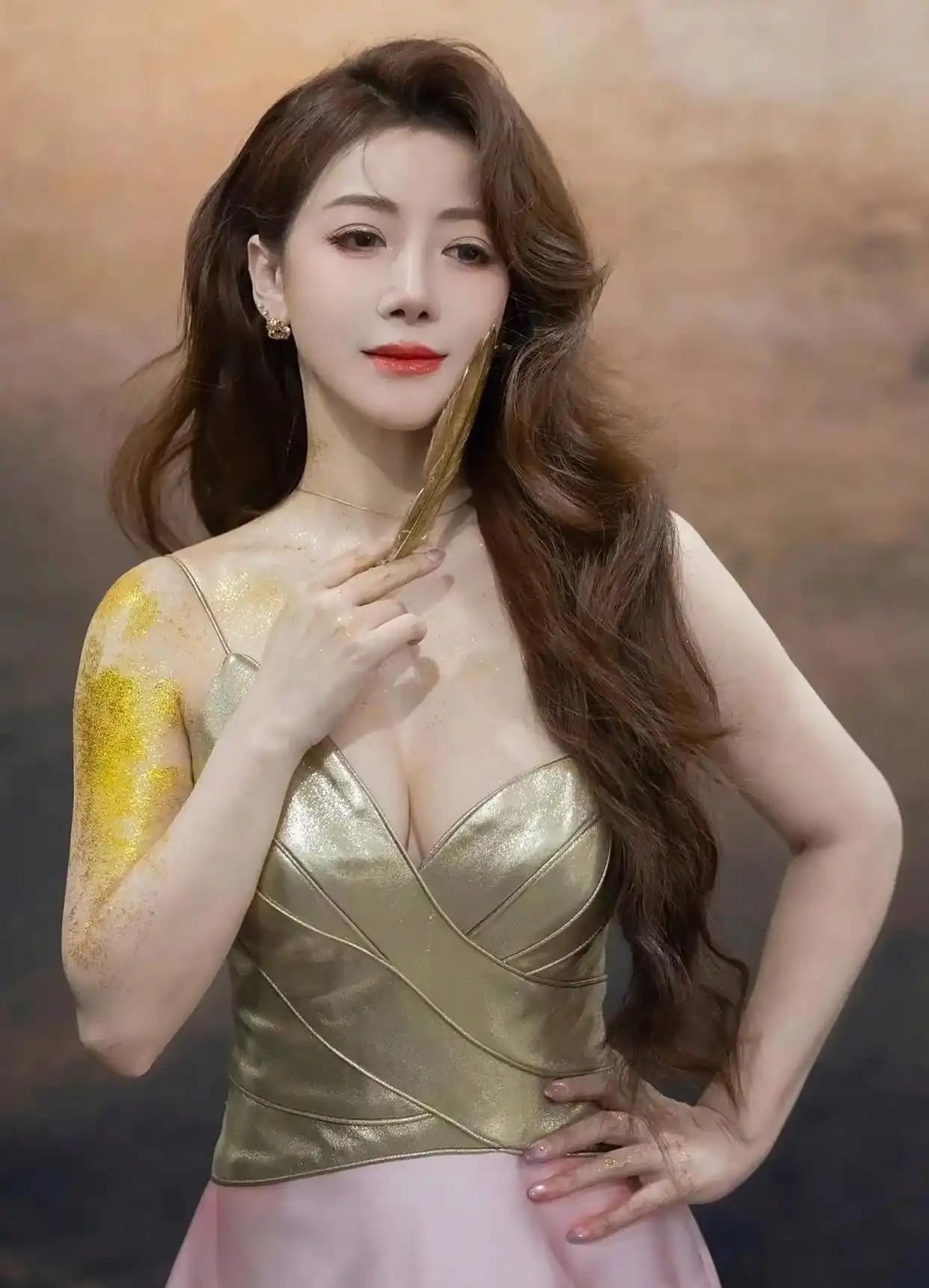 50岁陈紫函鎏金长裙写真引爆全网,完美曲线与成熟气质将奢华演绎到极致,高开叉裙摆与金属链条肩带的细节设计,展现"恰到好处的性感",再次印证"岁月从不败美人"的冻龄神话。