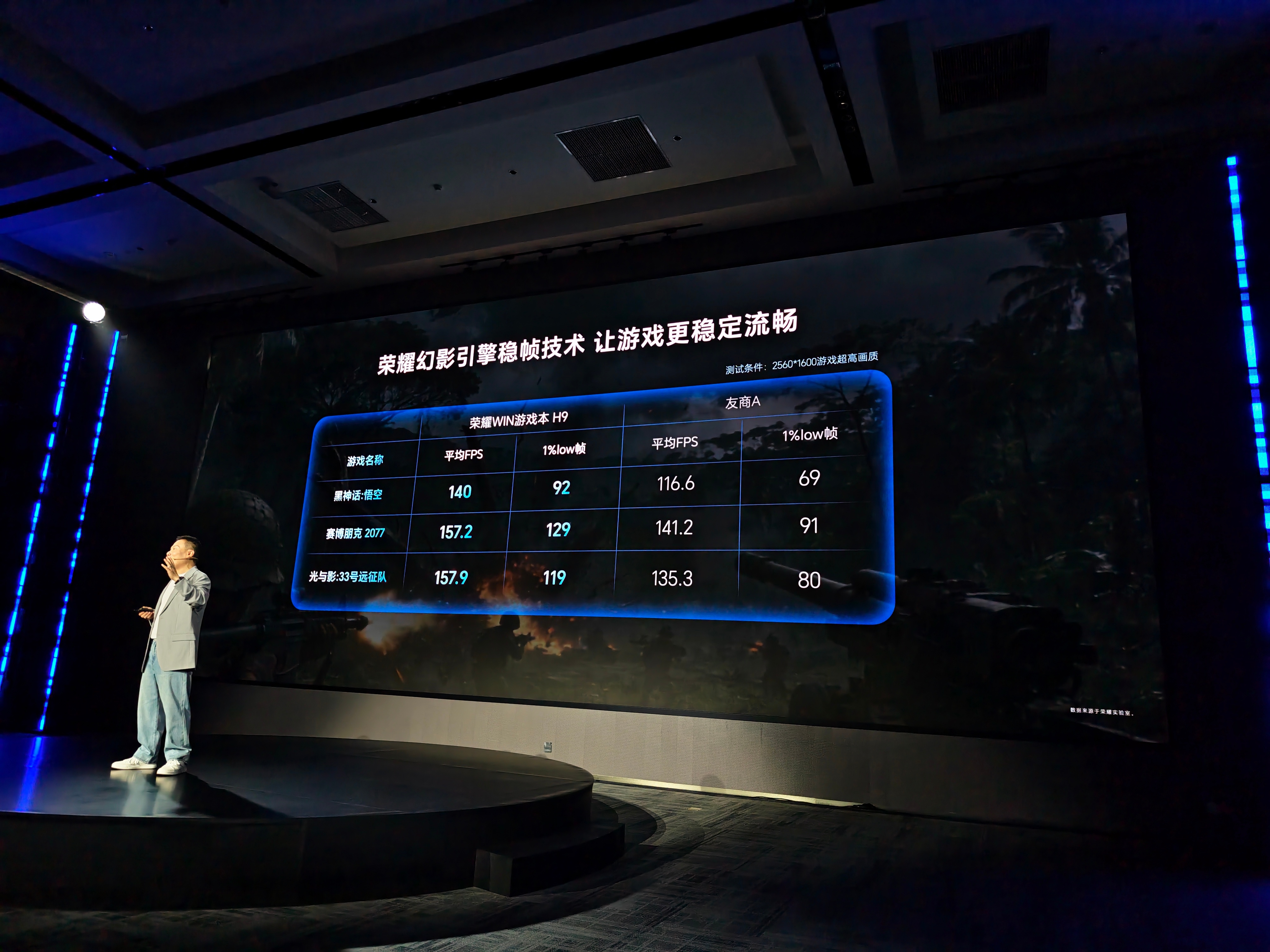 不仅于此,荣耀幻影引擎稳帧技术也将带到游戏本上,不过依旧需要一个个游戏进行适配推进,目前以黑神话悟空、赛博朋克2077和33号远征队已经适配完成,提升是很明显的