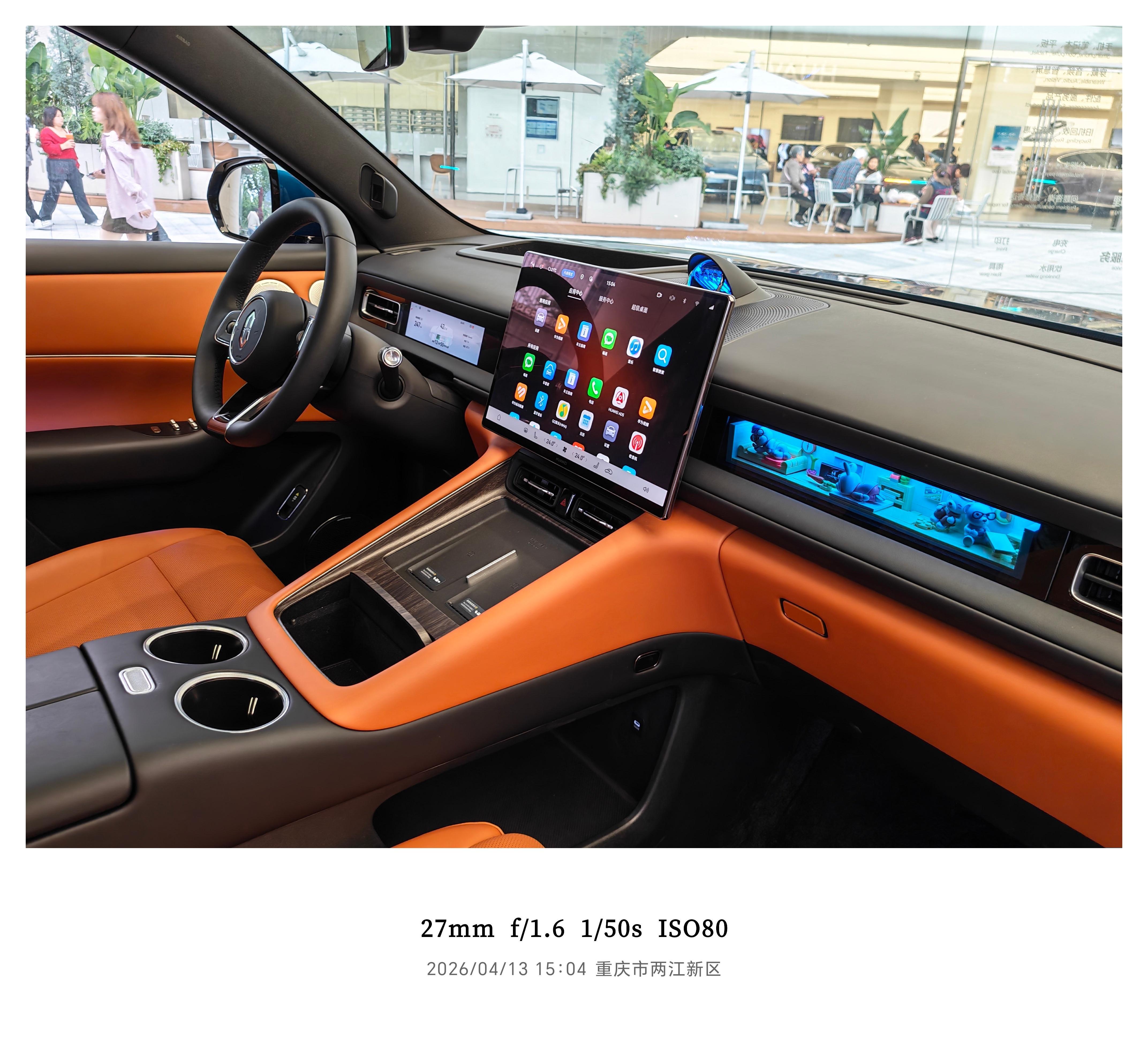 果然,问界M6的副驾那里是一块玻璃,里面可以放小玩具,然后可以随着车内氛围灯调节