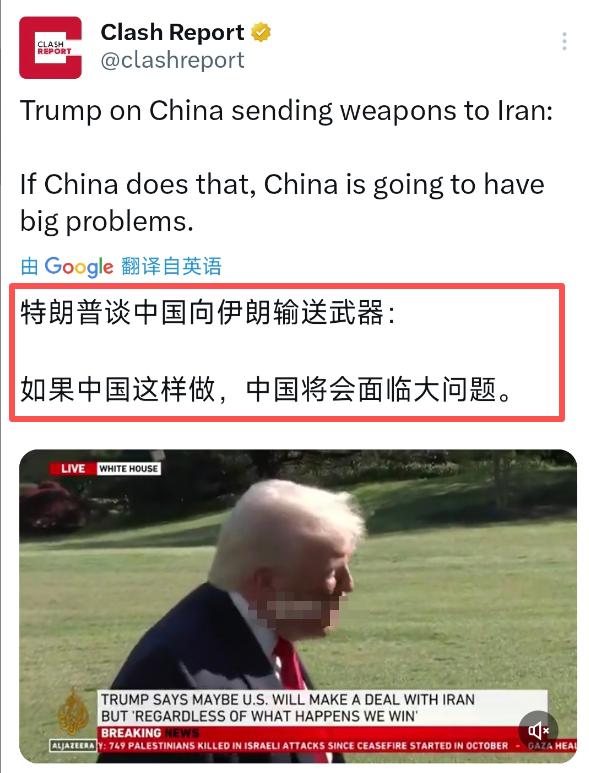 4月12日,特朗普在接受采访时放了狠话:如果中方敢向伊朗输送武器,那中方将会面临“大问题”。