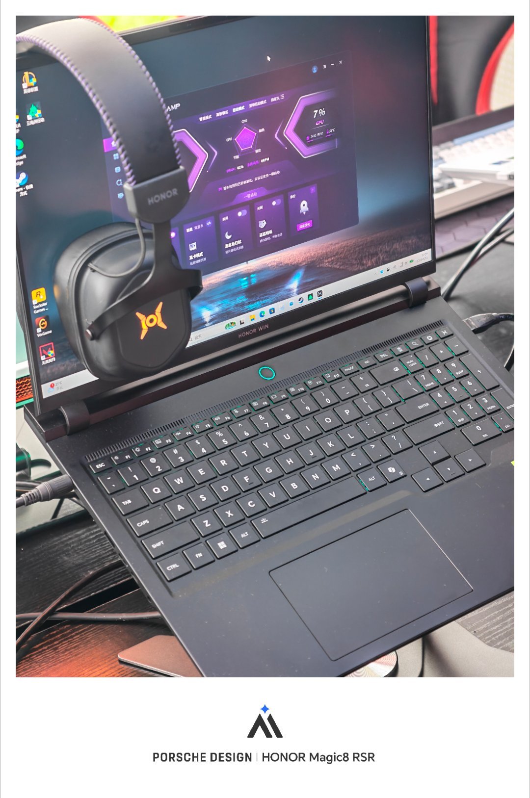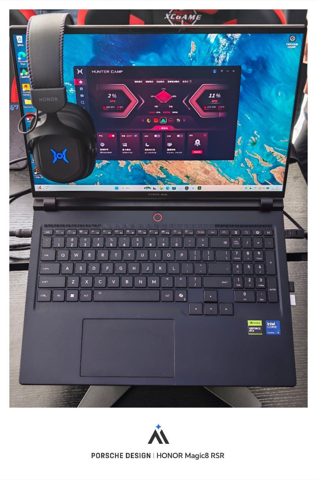 荣耀WIN游戏本首发东风尾喷散热引擎4个高性能自研轴流风扇,配合2个强大的离心