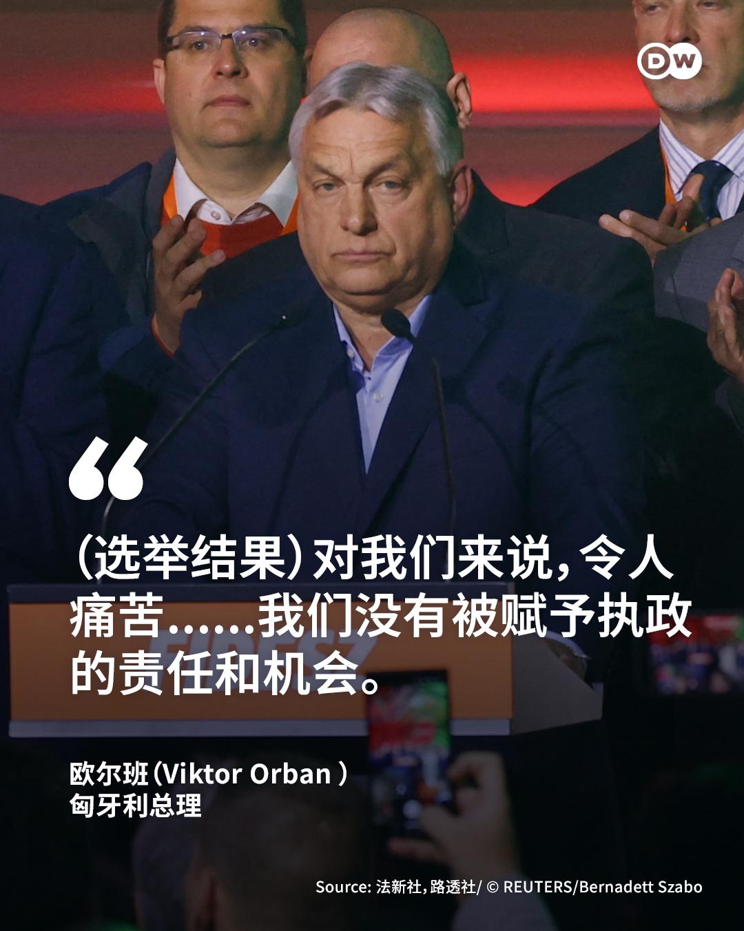 匈牙利现任总理欧尔班向选民宣布不敌反对派领导人马札尔,承认败选,并祝贺马扎尔。