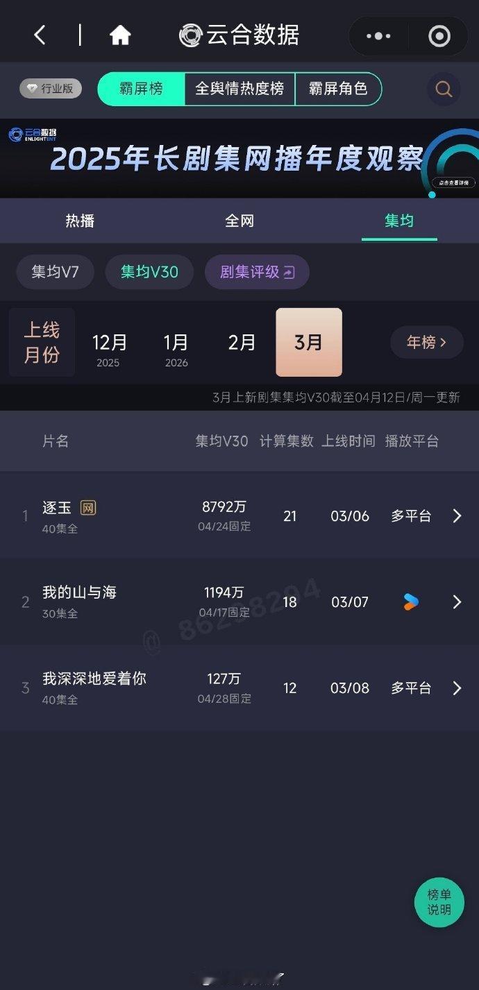 张凌赫、田曦薇《逐玉》三月集均V30再次断层第一☝️