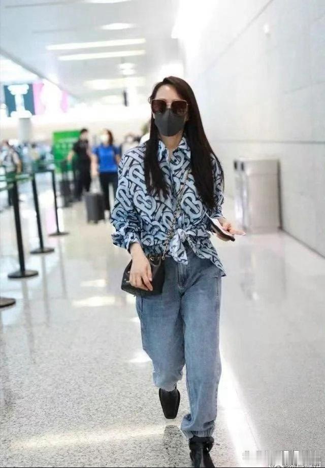 年过半百依旧少女感满满!伊能静印花衬衫搭配牛仔裤,穿搭清爽耐看,时尚大方,氛围感十足格外减龄