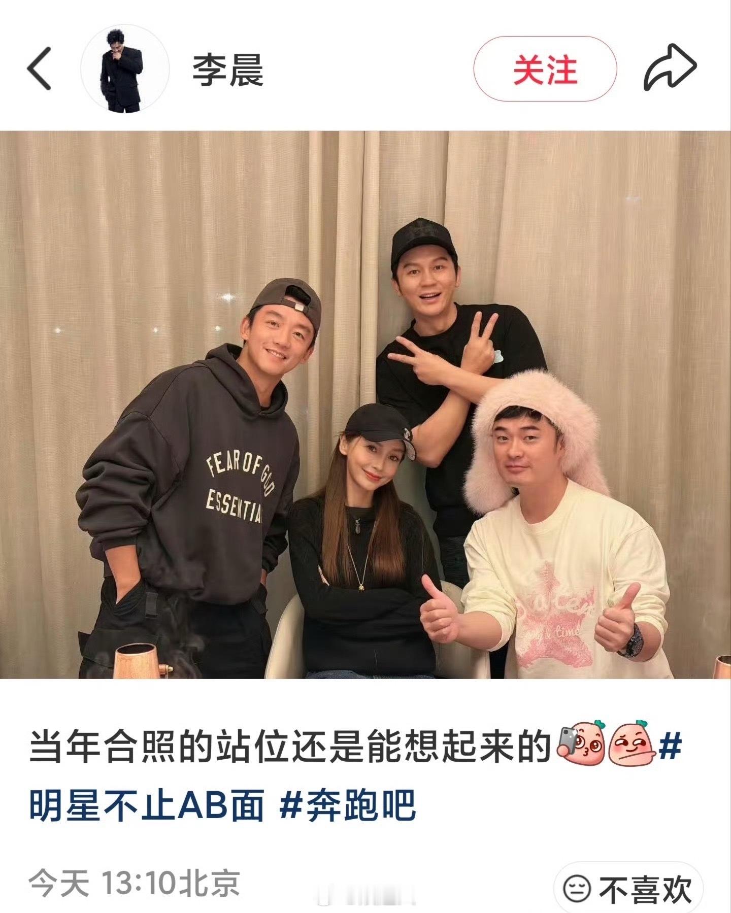 初代跑男合体了李晨晒与angelababy郑恺陈赫合照 初代跑男合体了
