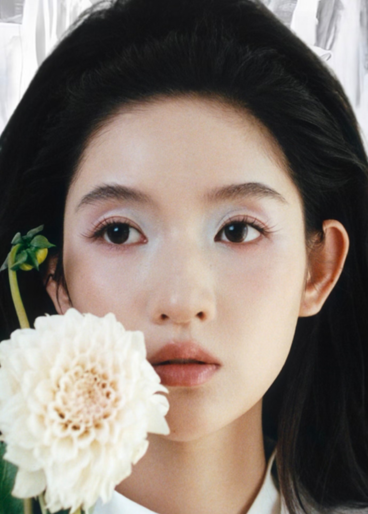 夏日清新少女,绿意盎然背景,甜美笑容,自然妆容,优雅发型,清新自然,少女心满满。