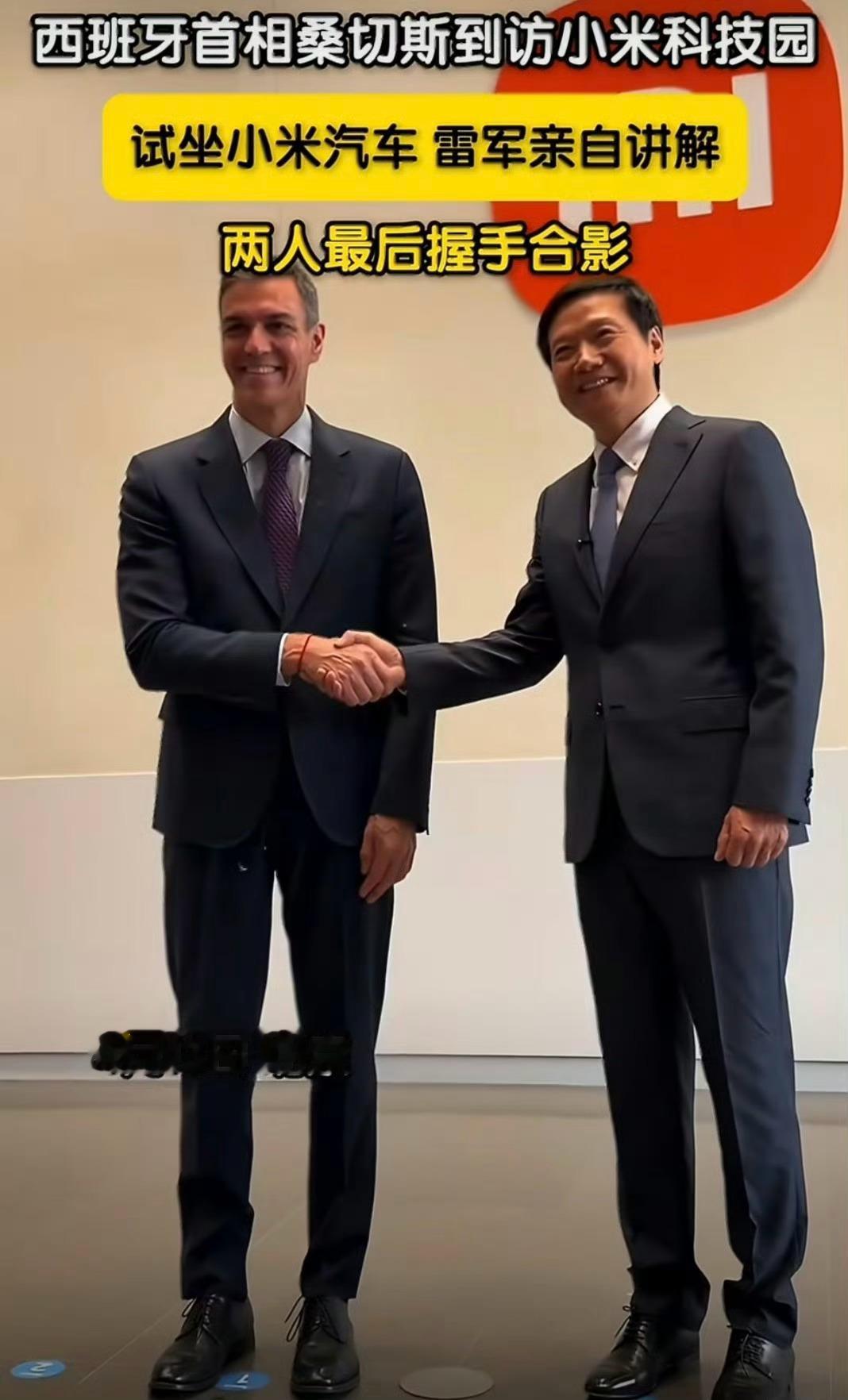 而这一切并非偶然。之前小米SU7测试车也已现身西班牙街头,为2027年登陆欧洲市场铺路。从手机到汽车,从消费电子到出行生态,中国智造正在一步步走向世界舞台中央。西班牙首相试坐小米汽车