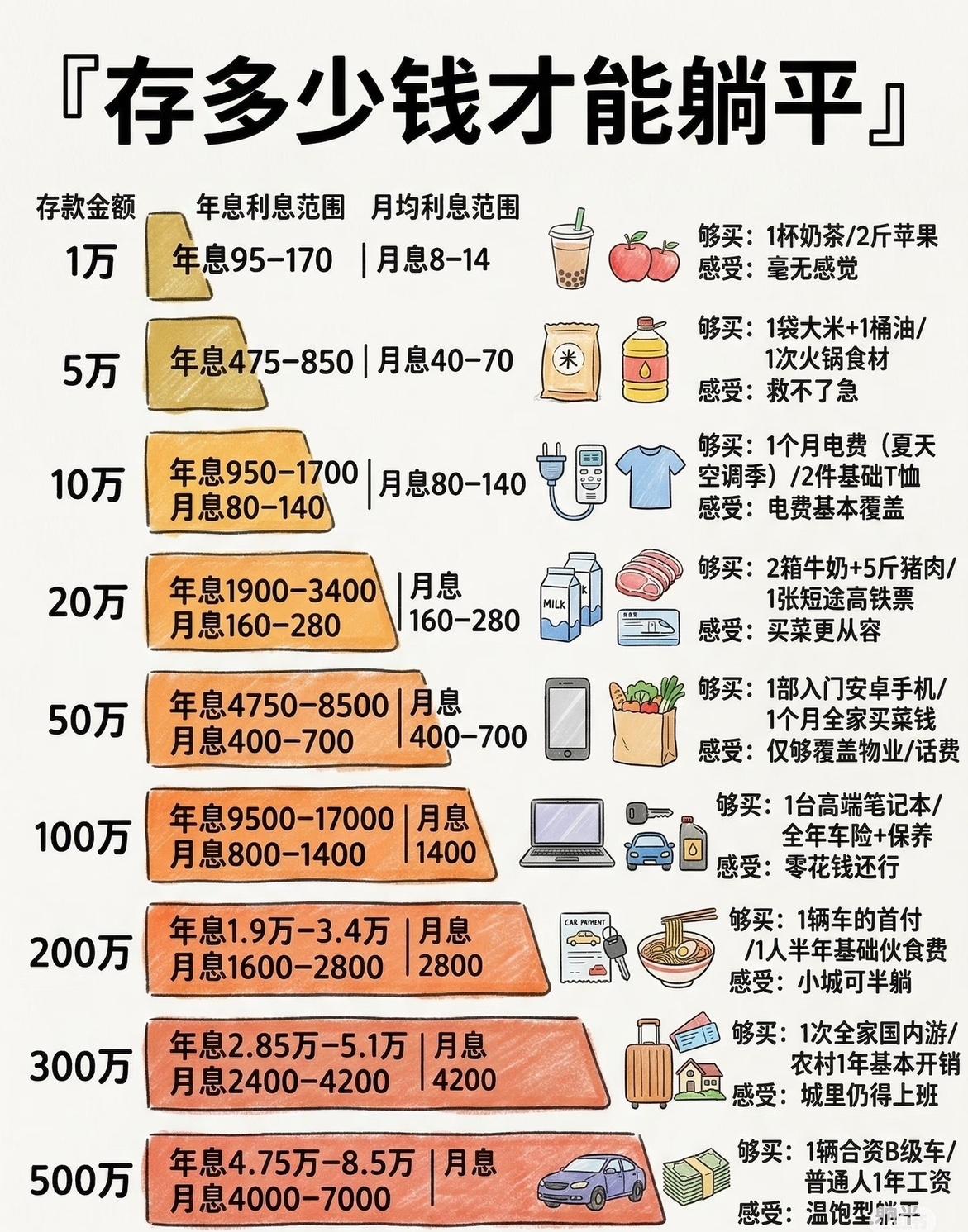 想想前些年高利率的时候,看着利息涨得欢,可物价涨得更快,存银行的钱悄悄就贬值了。现在不一样,到处都是投资坑,炒股怕被套,跟风创业怕血本无归。与其瞎折腾把本金搭进去,不如老老实实存钱,既能应付家里的突发急事,等经济回暖了又有本钱抓住机会,至少能稳稳跑赢那些亏了钱的人。