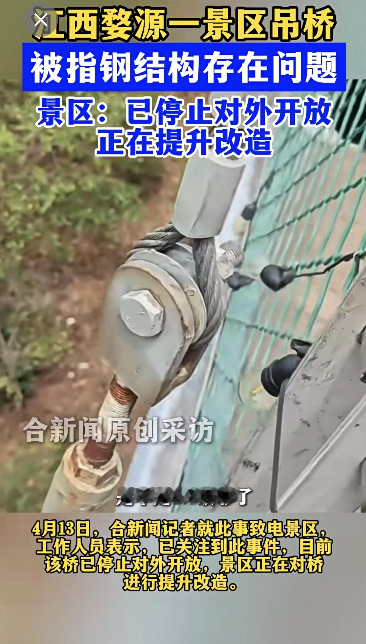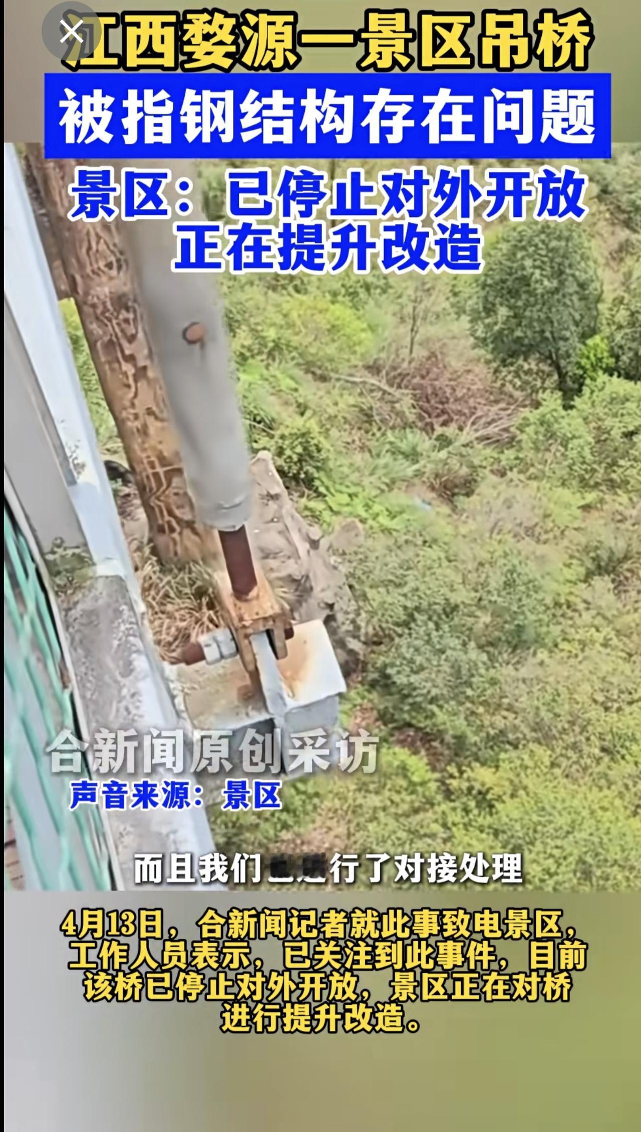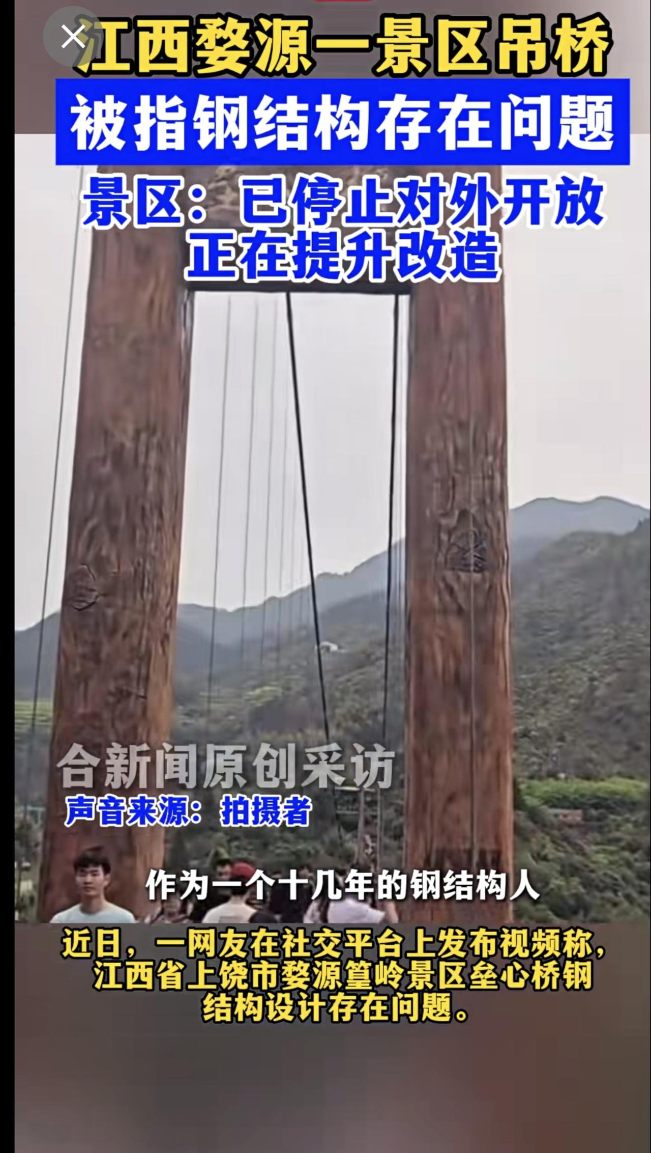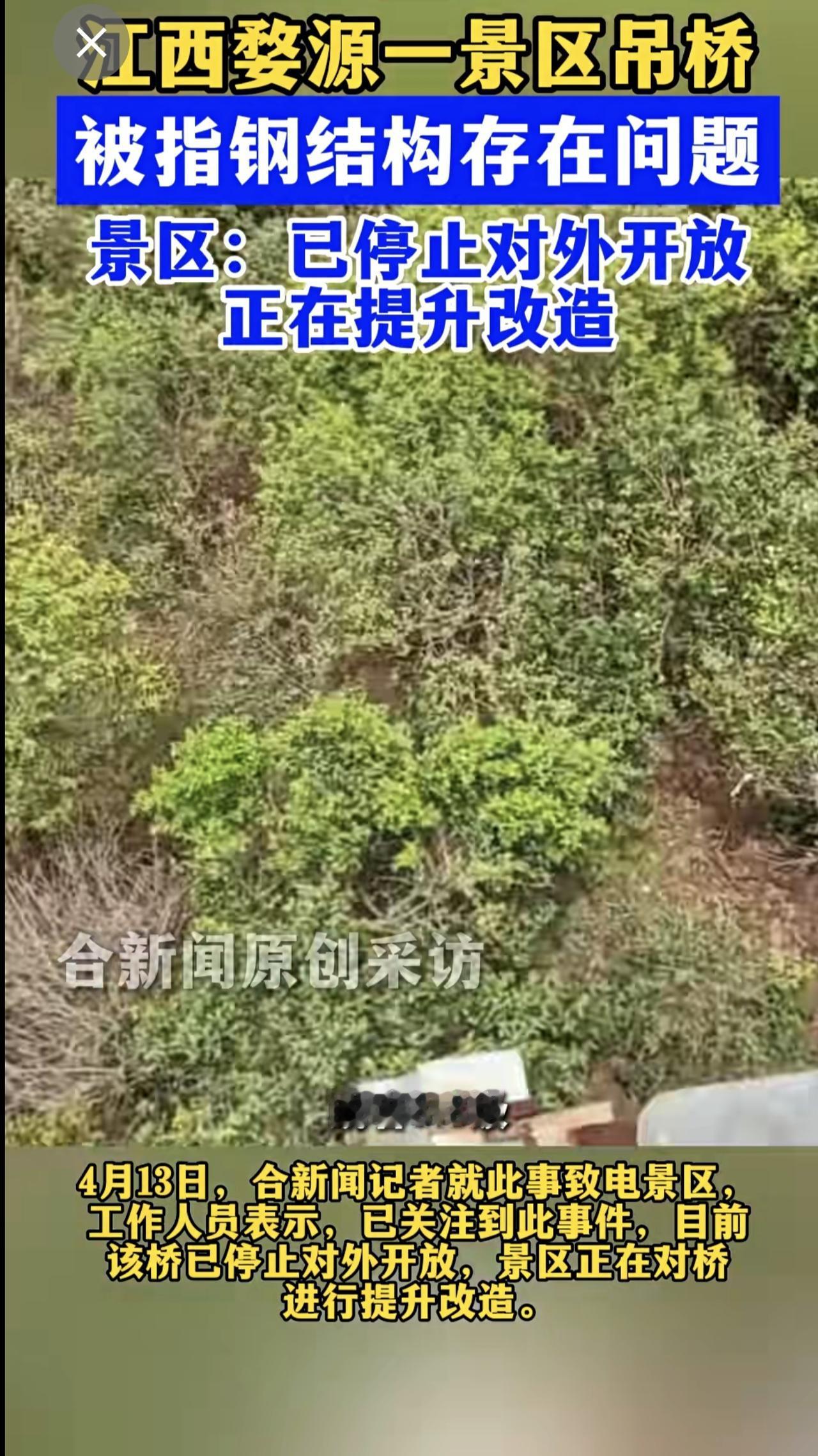 江西婺源篁岭景区一吊桥被指钢结构存在问题,景区回应:已停止对外开放,正在提升改造