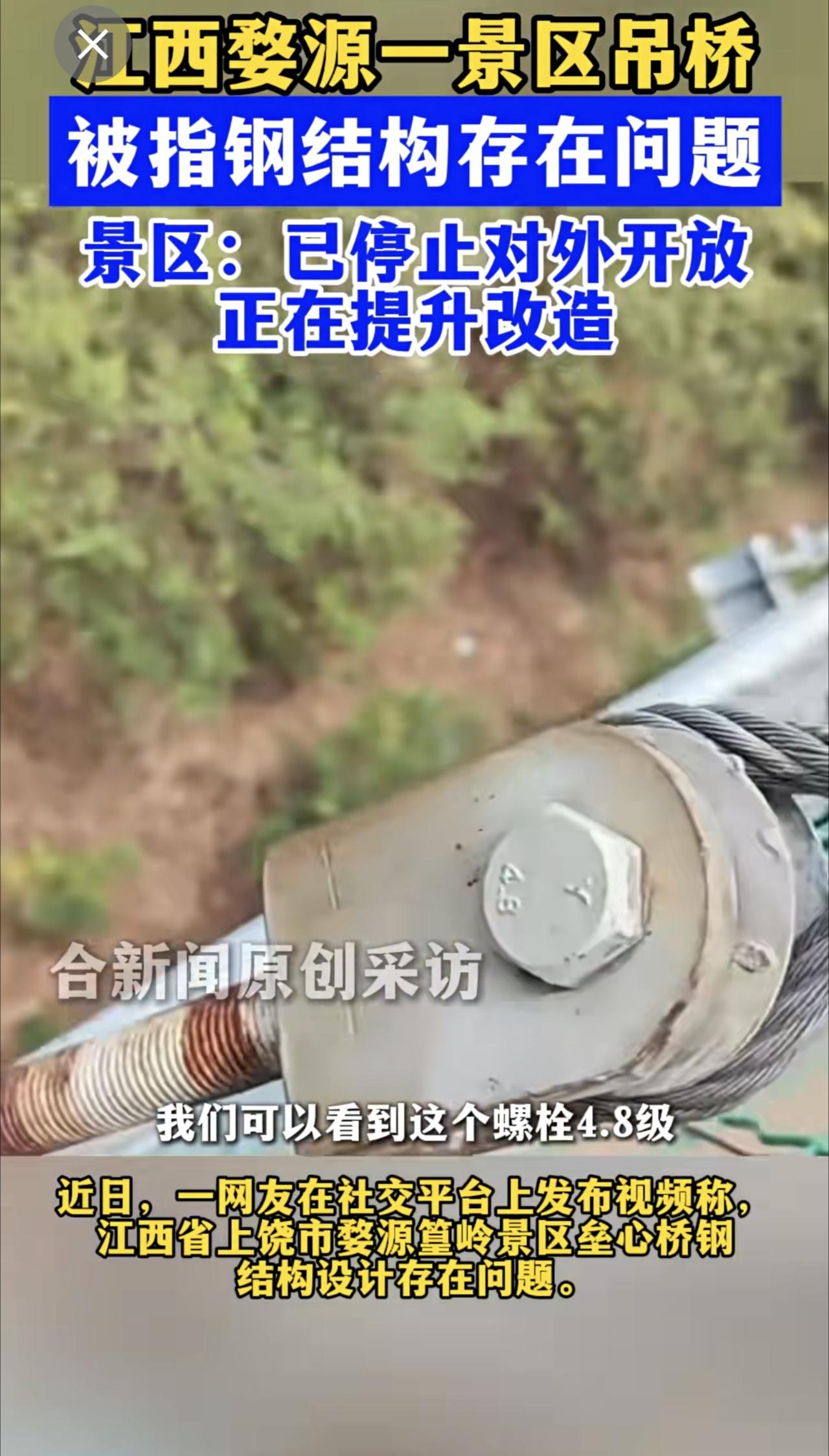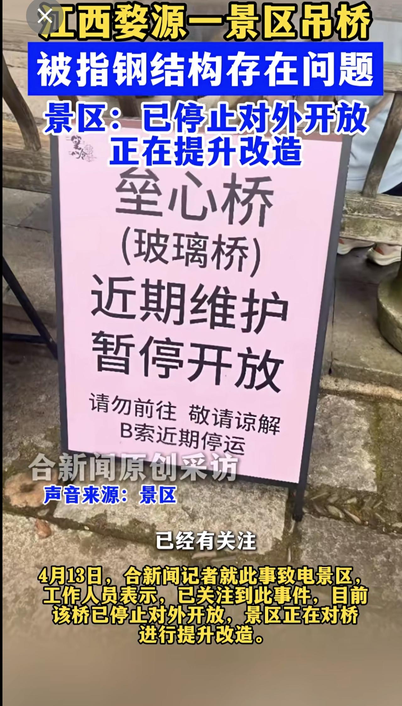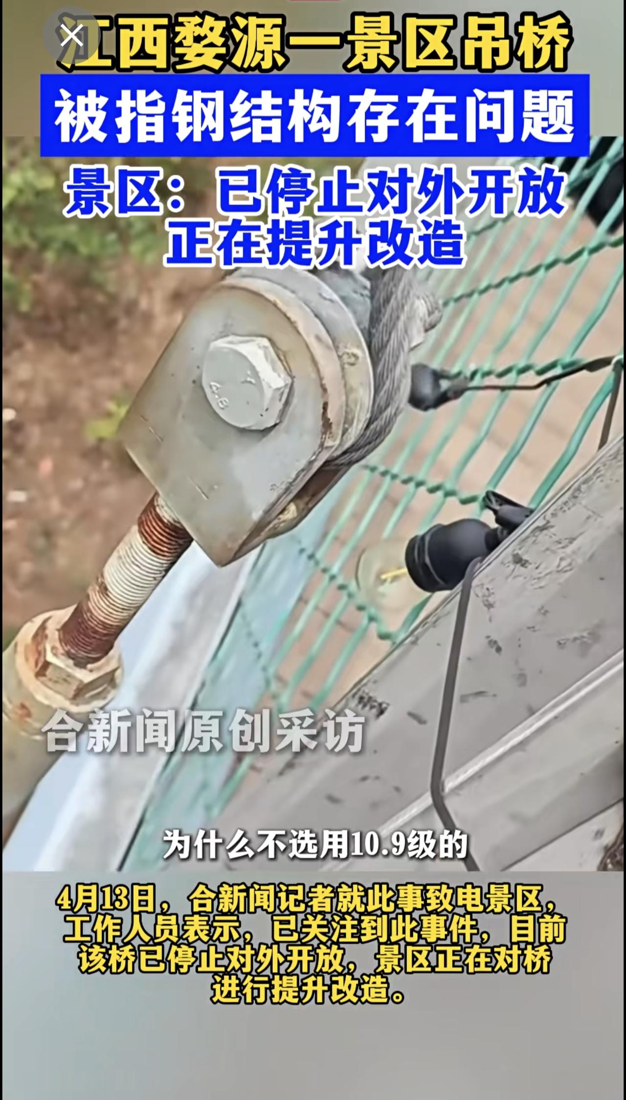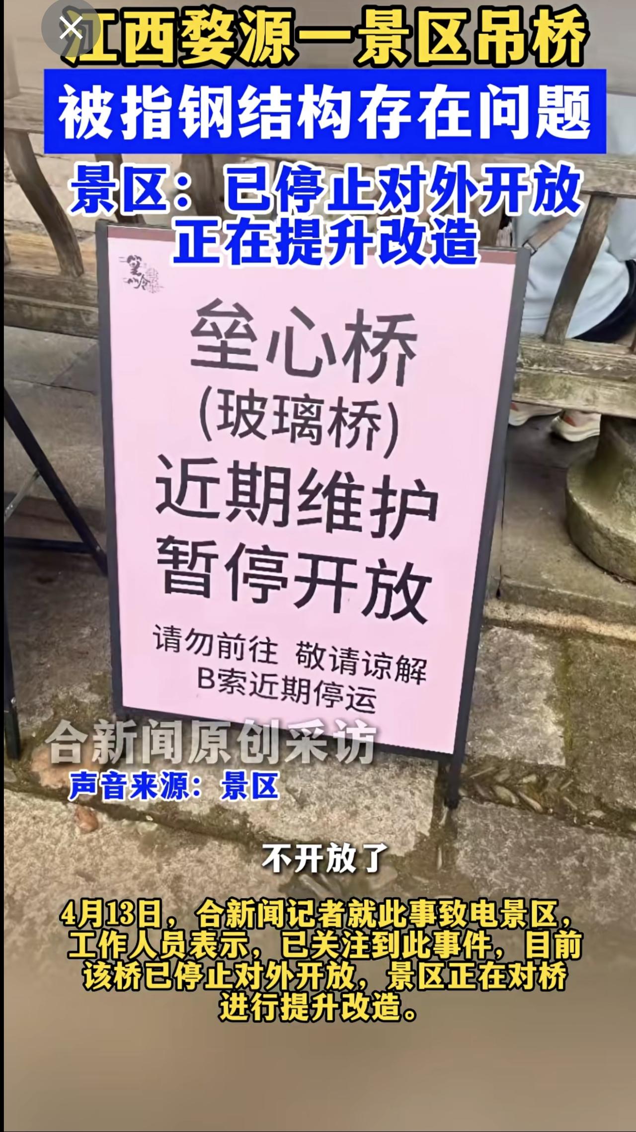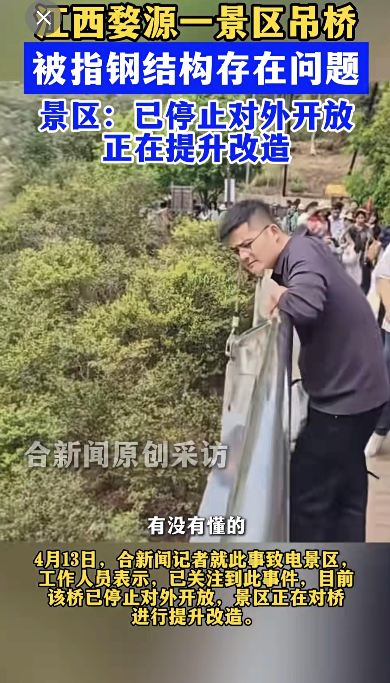 江西婺源篁岭景区一吊桥被指钢结构存在问题,景区回应:已停止对外开放,正在提升改造