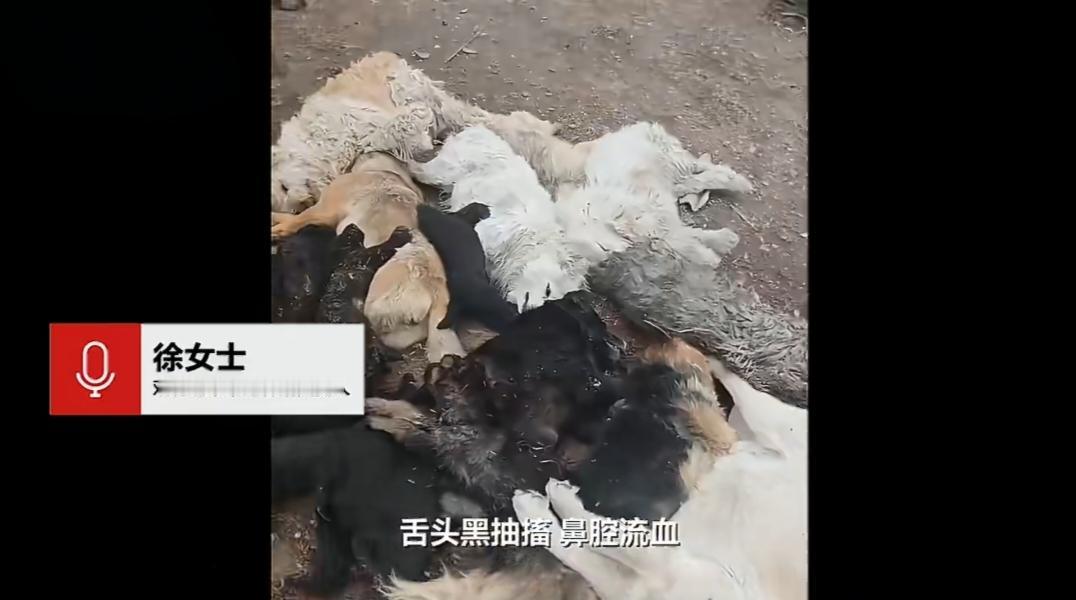 负责人徐女士去喂狗时,直接傻眼了,她发现17条狗全都倒在地上,没了呼吸!其中还有7只刚出生的幼犬,死状惨不忍睹,舌头发黑、鼻腔流血、浑身抽搐,明显是中毒身亡!