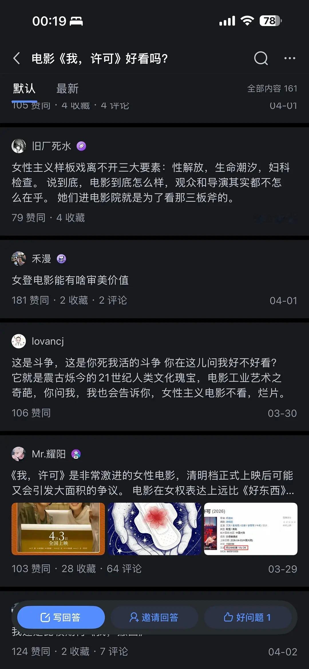 我在微博聊电影 我发过《我,许可》的影评,我指出了这部片子在创作上更多的是在迎合市场,并没有真正深入地讨论女性议题。然后就有一些观众认为我是厌恶女性主义题材……我给你们看看什么才是真的厌恶,某乎才是你们应该轰炸的大本营。