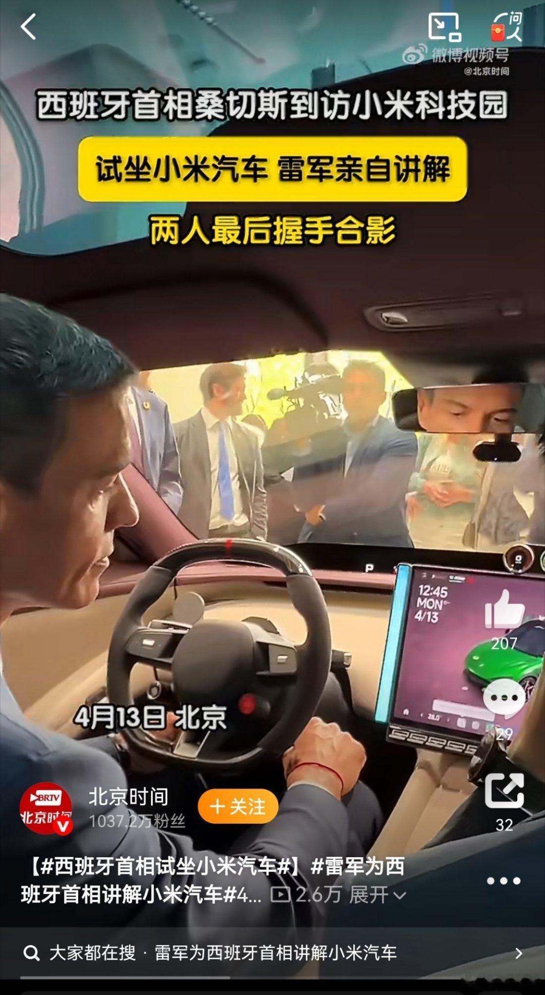从昨日郑丽文到今日西班牙首相,两天两位重磅访客密集到访,小米汽车俨然已成为国际考察中国科技实力的新地标,其全球影响力正加速提升。西班牙首相试坐小米汽车