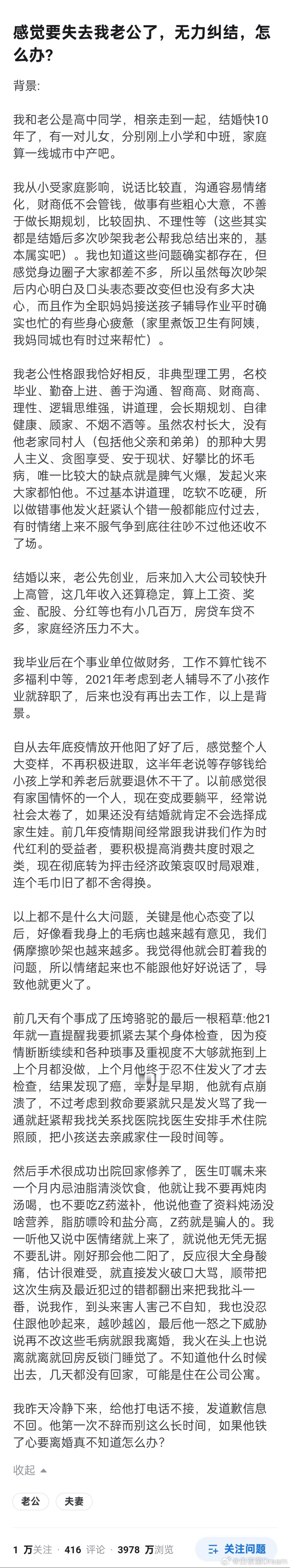 【感觉要失去我老公了,无力纠结,怎么办?】