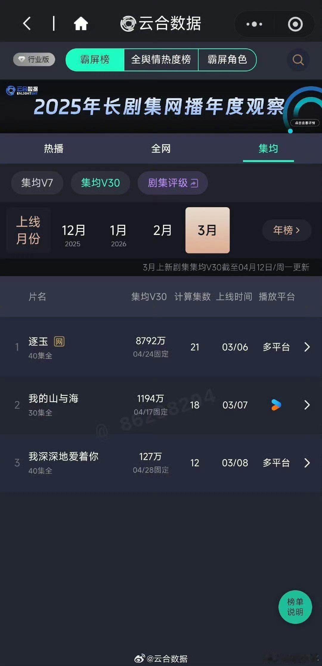 逐玉云合月榜第一张凌赫田曦薇逐玉云合月榜第一断层领跑无压力!《逐玉》云合3月月榜