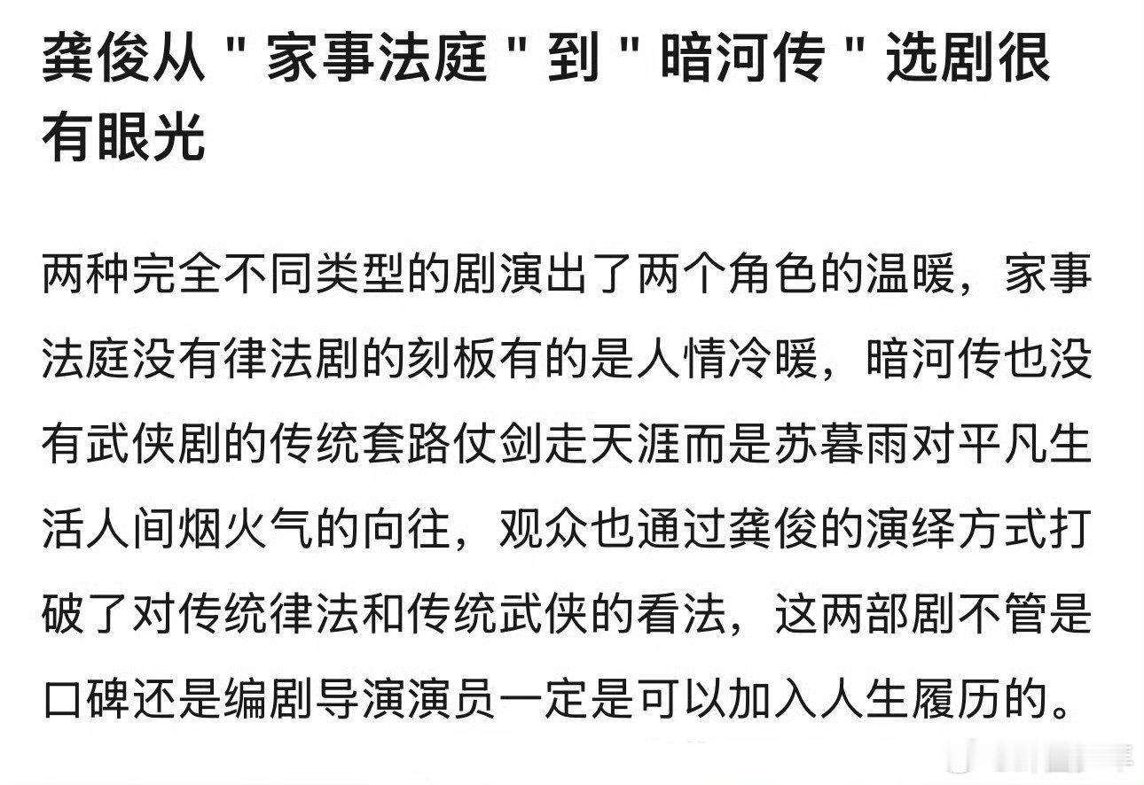 龚俊选剧很有眼光龚俊选剧眼光选剧有品味,演技有底气,龚俊一次次用不同题材的角色证