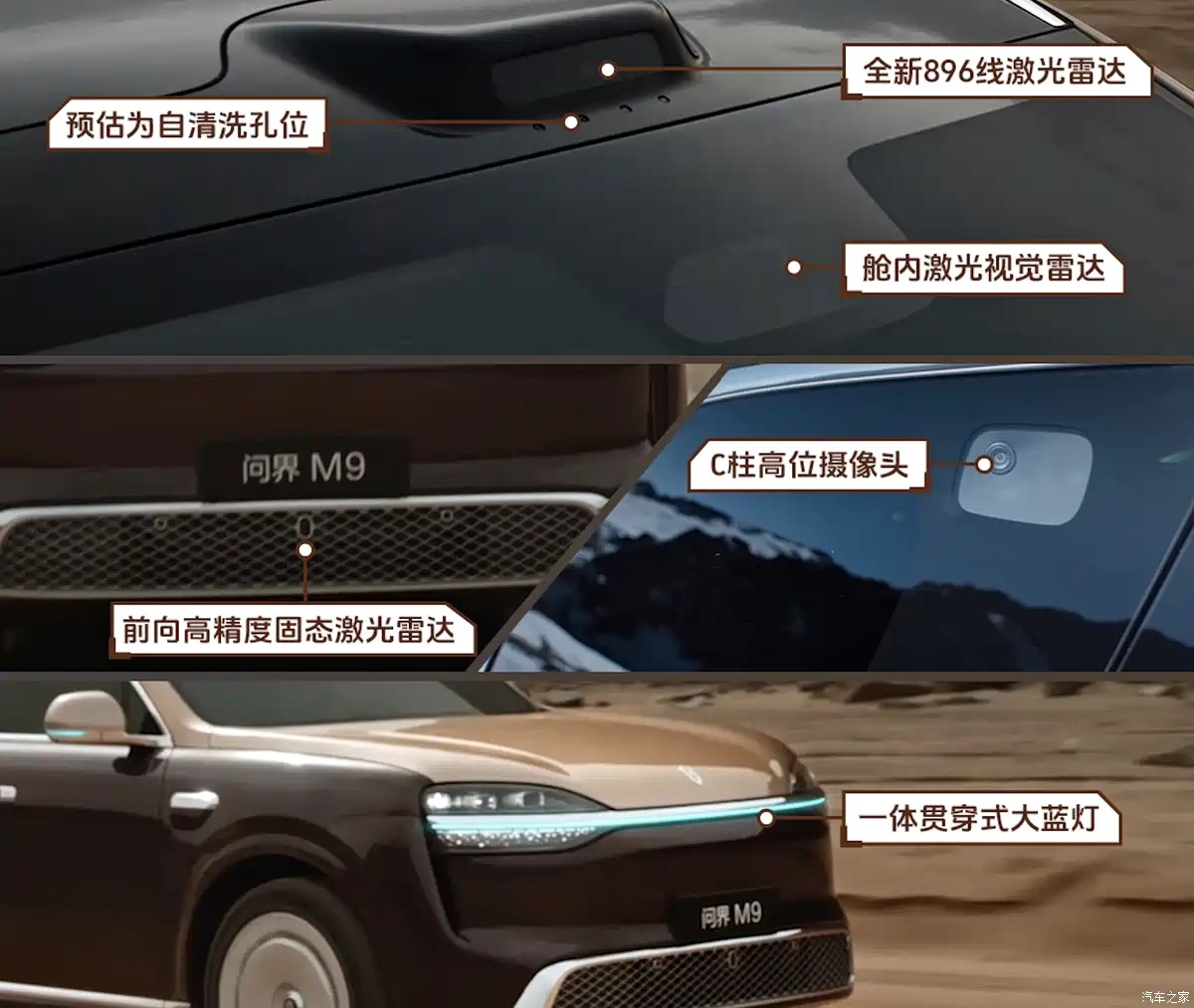新款问界M9官图发布。配备6激光雷达,新增C柱侧向摄像头,同时还将提供高阶的智能感知、动力系统与主动悬架车目标预瞄等新技术。依旧搭载纯电和增程动力系统,提供5座/6座车型,尺寸也有所提升。新车搭载全新一代宁德时代电池,增程版提供60kWh和75kWh两种电池组,纯电车型搭载120kWh电池组。增程1.5T发动机动力,纯电动力参数,续航各方面相比现款有所提升。