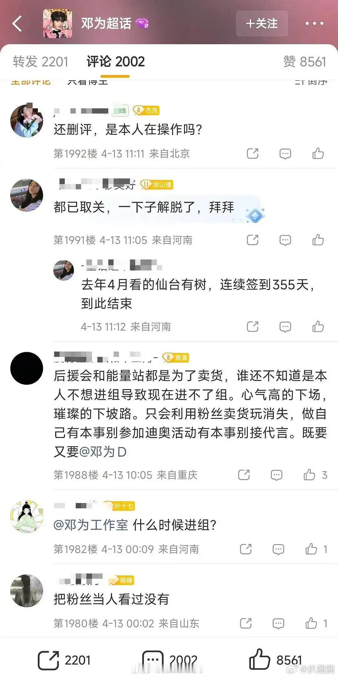 邓为粉丝疑似因为百妖谱新瓜而崩盘官方对接和经纪人底下都是回踩,还在持续评论和删评…粉丝向邓为团队提出质疑了,大家怎么看?
