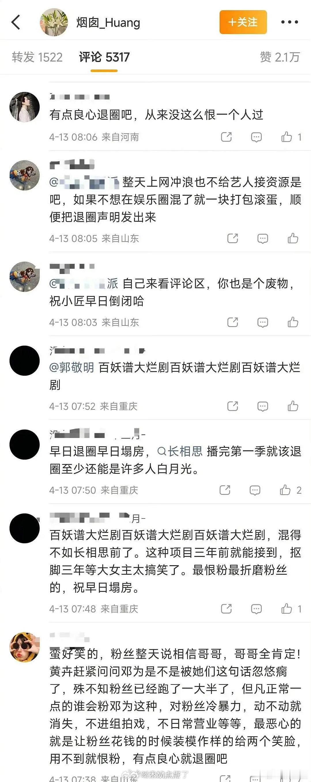 邓为粉丝疑似因为百妖谱新瓜而崩盘官方对接和经纪人底下都是回踩,还在持续评论和删评