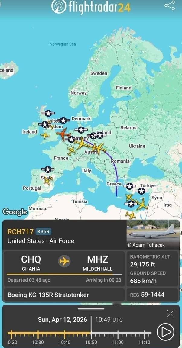 大量美军C-17运输机持续飞往美国和以色列在该地区的基地,可能是为了补充弹药供应。此时C-17运输机、KC-135加油机和其他货运飞机形成一条从大西洋穿过欧洲直达西亚的不间断空中走廊。