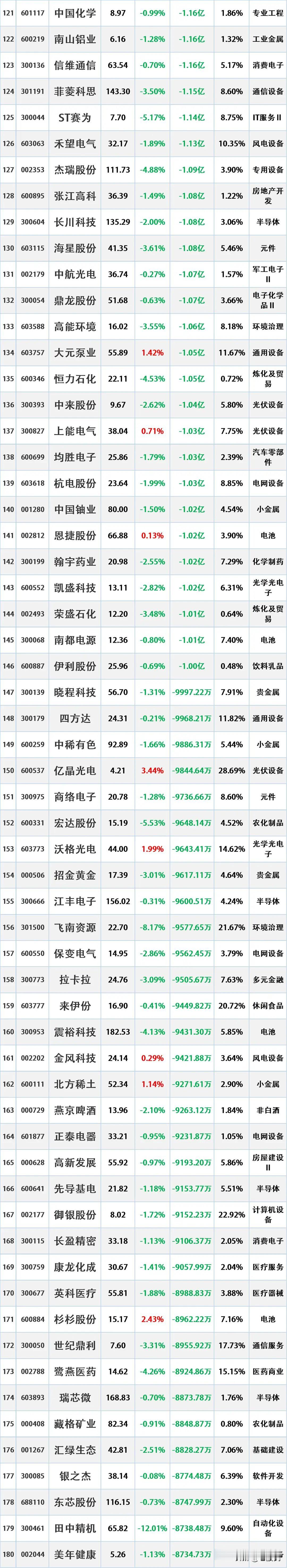 尾盘资金出逃,4.13主力资金“最大卖出”个股名单