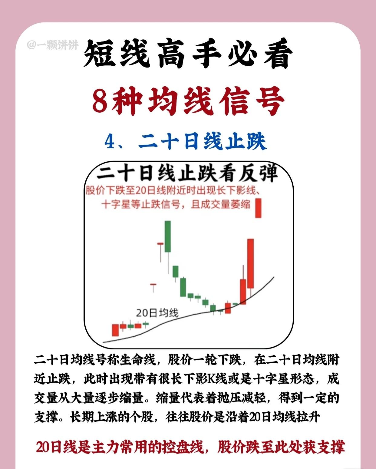 20日线为“生命线”,缩量止跌表明抛压减轻,空方动能衰竭。若长期上涨个股回调至此,常为短线反弹起点。