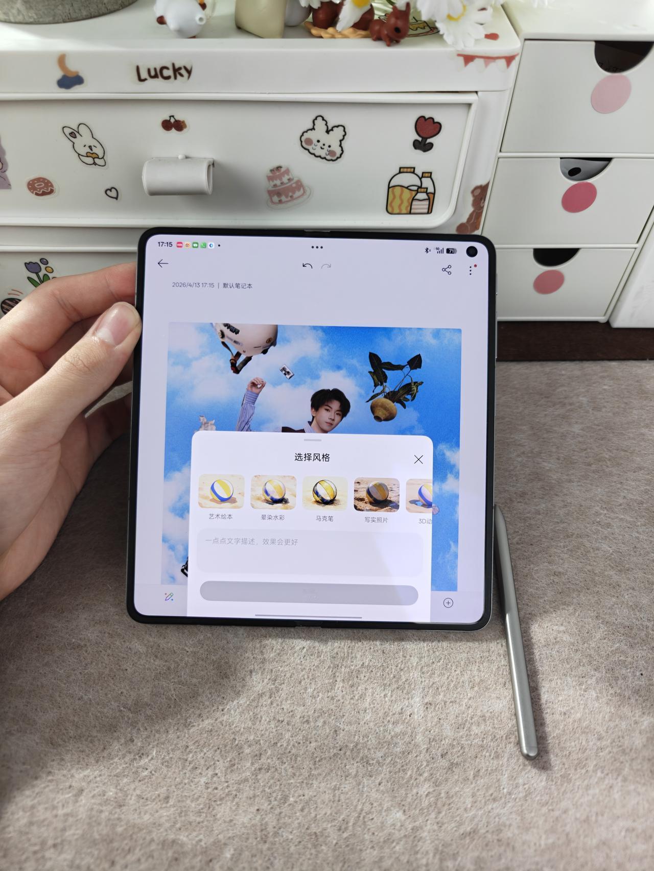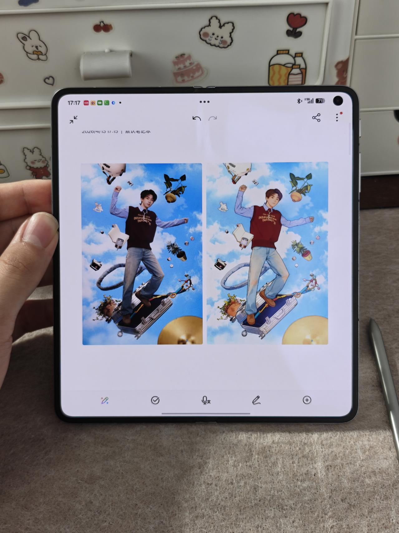 那张蓝天白云的海报铺满整个内屏,因为几乎看不到折痕,就是干干净净一整块,我平时用手机看海报根本没这种感觉,这次真的有点不一样。