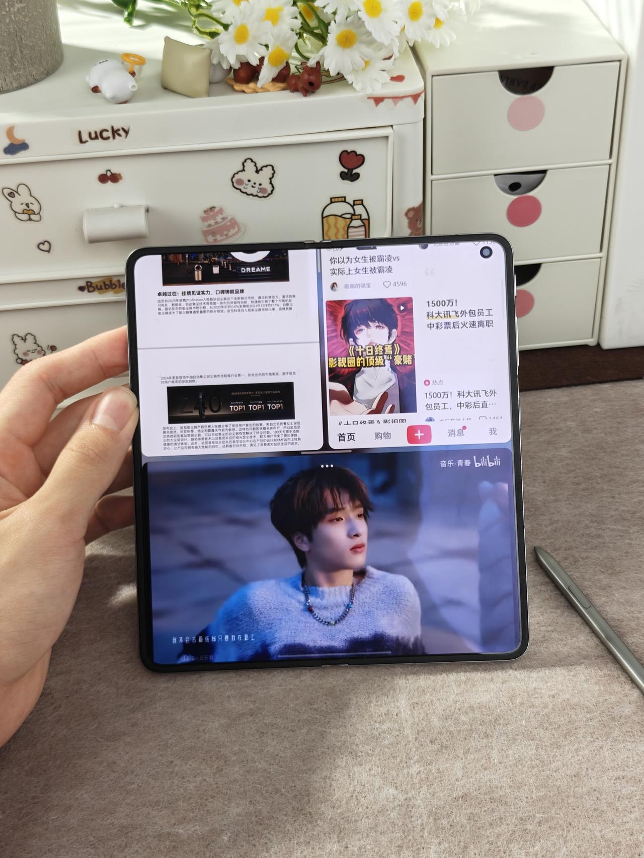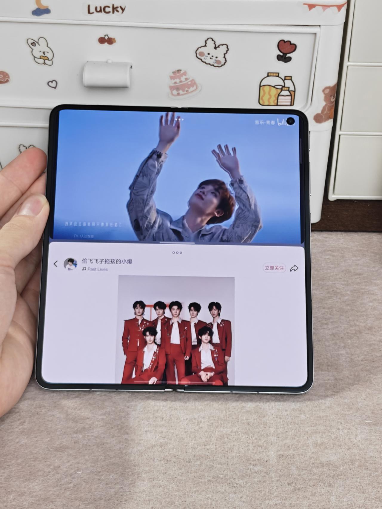 左边刷新歌切片,右边同时开着歌词页,分屏直接拿上了,OPPO Find N6全景自由窗这个功能我之前觉得没啥用,今天才发现追星用起来是真的爽。