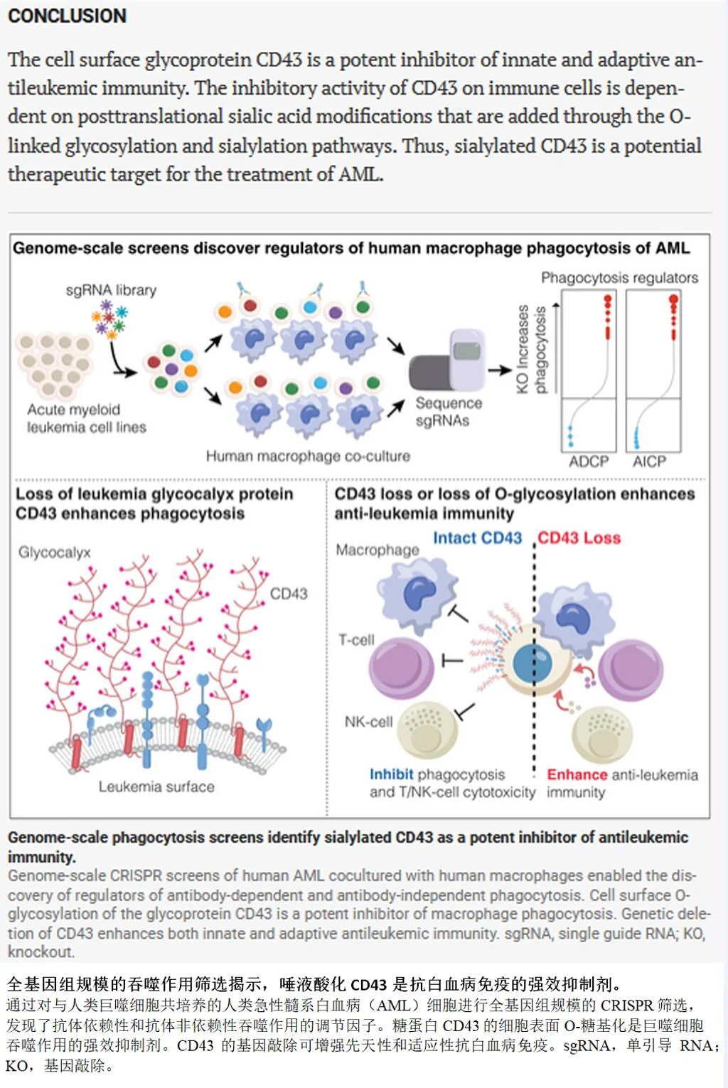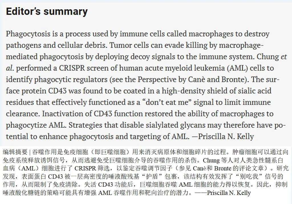 研究人员用全基因组CRISPR筛选,地毯式搜索了所有可能抑制巨噬细胞吞噬的基因。最终锁定一个叫CD43的蛋白。