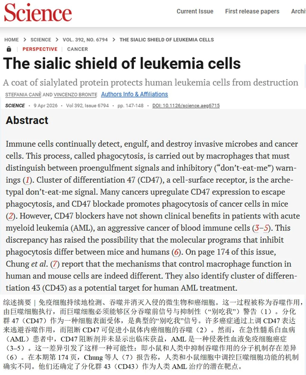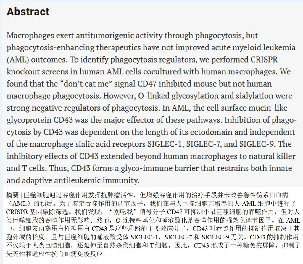 这项发表于《科学》的研究揭示了一个重要转变:与其盯着CD47这个在小鼠身上有效、在人类身上失灵的靶点,不如直面CD43这面真实存在的糖盾。