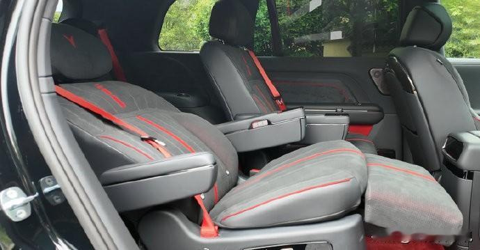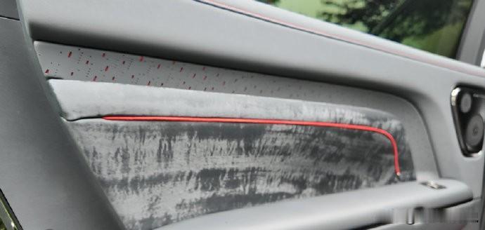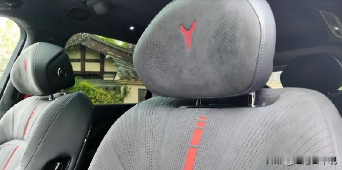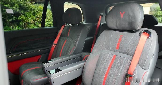 座椅上采用了大面积的墨黑皮质,但缝线却是点睛的朱砂红。